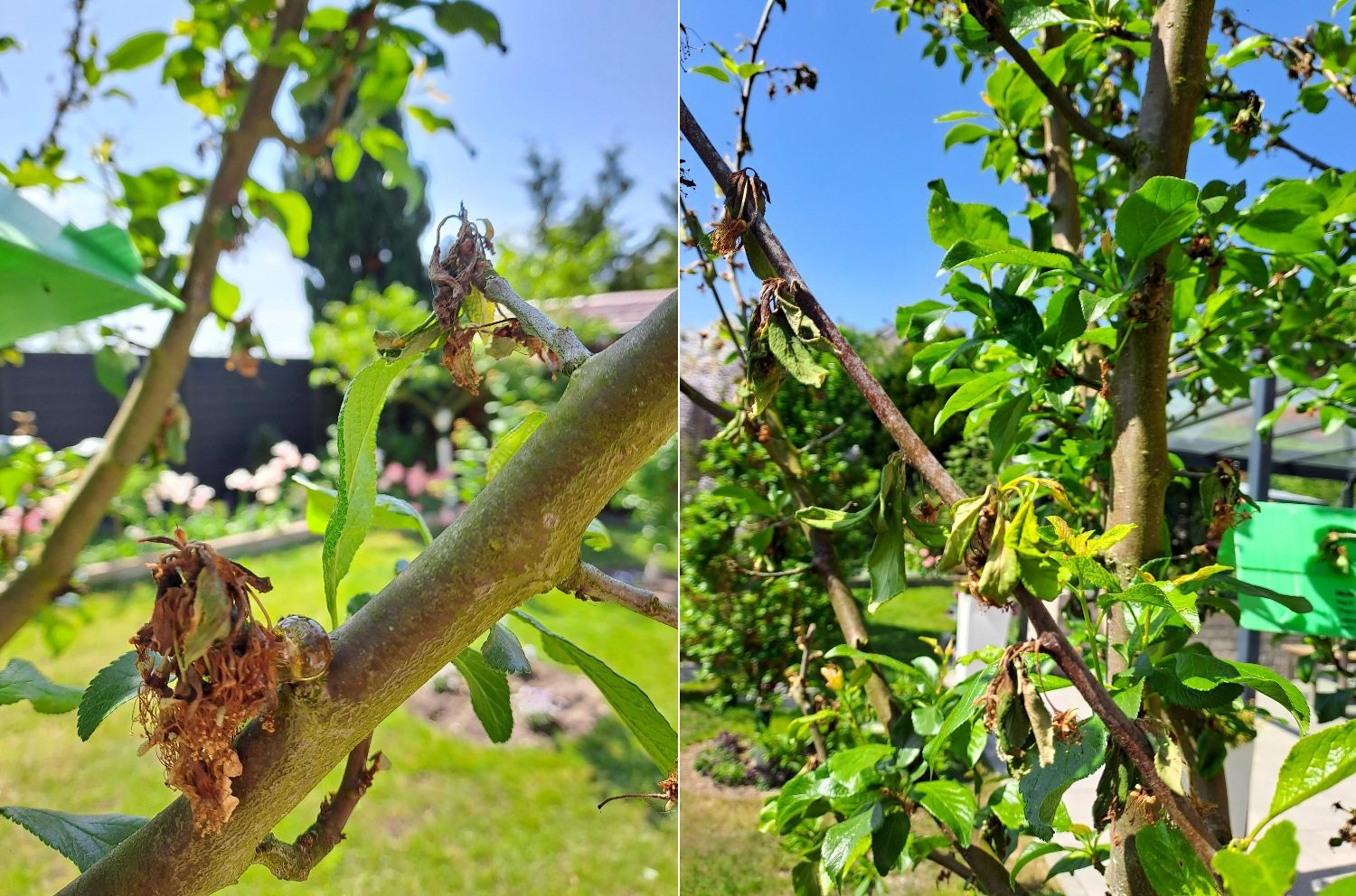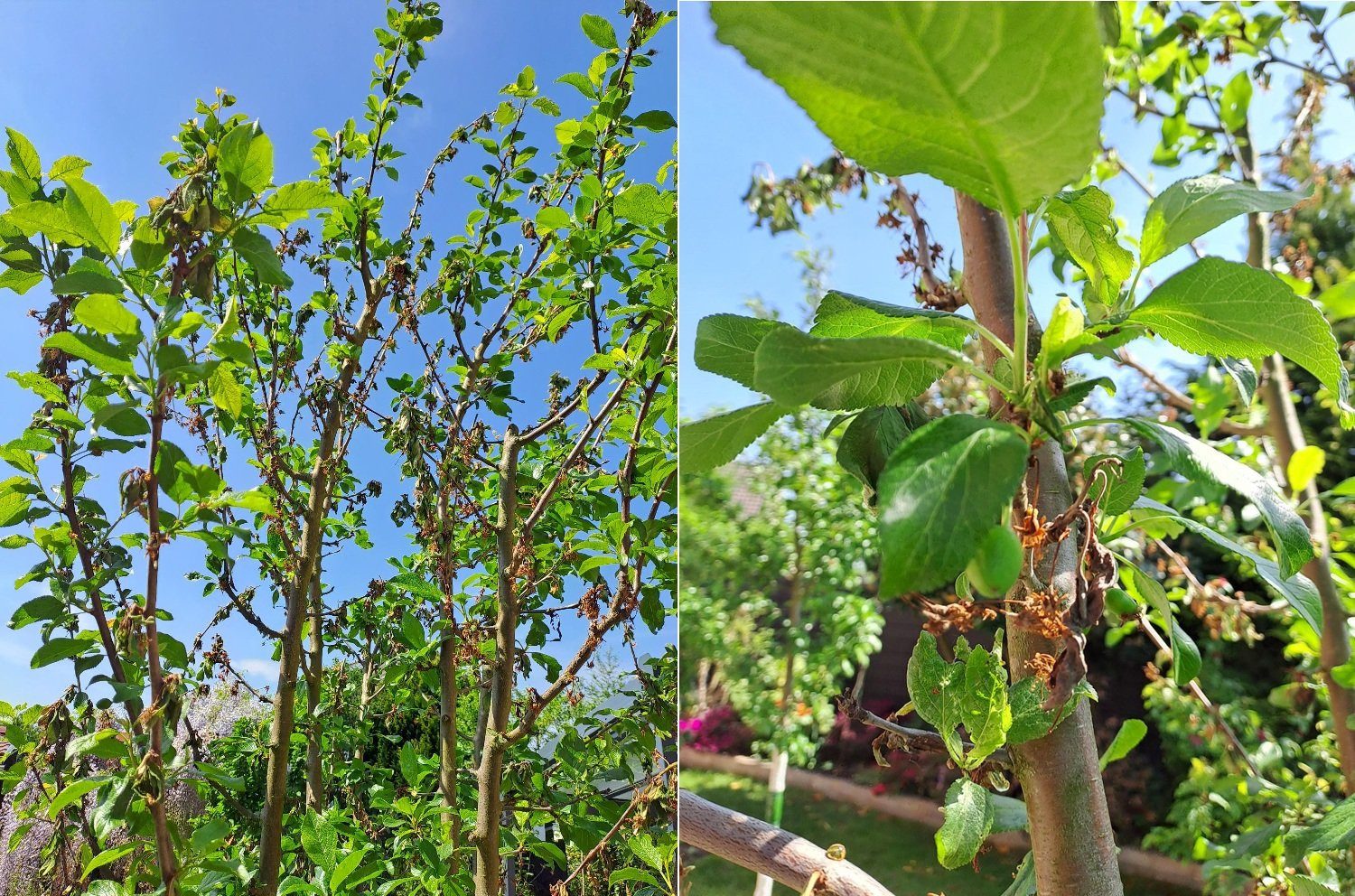 Mit Duaxo behandeln hätte man zur Zeit der Blüte machen können, dann hätte man jetzt nix zum zurückschneiden und der Baum wäre gesund geblieben.