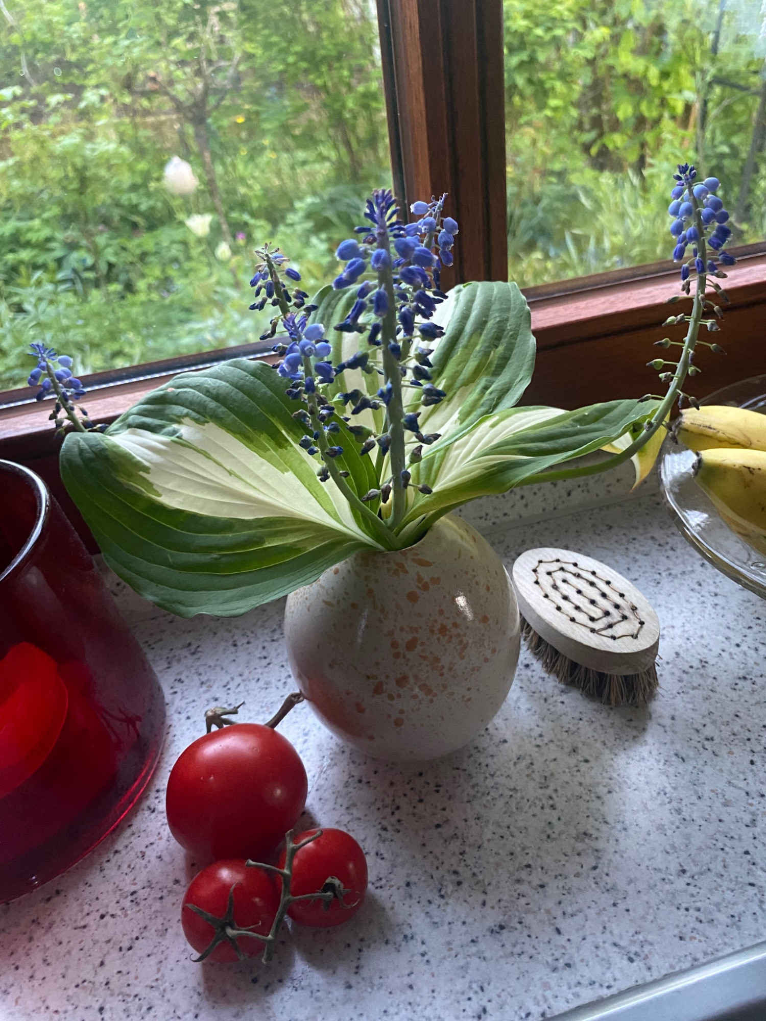 Diese Hosta hat mir heute eine Gartenfreundin mitgebracht, nachdem sie ihre Pflanze geteilt hatte. Sie weiß allerdings den Namen nicht mehr; gekauft bei planwerk bei den Fürstenfeldbrucker Gartentagen.