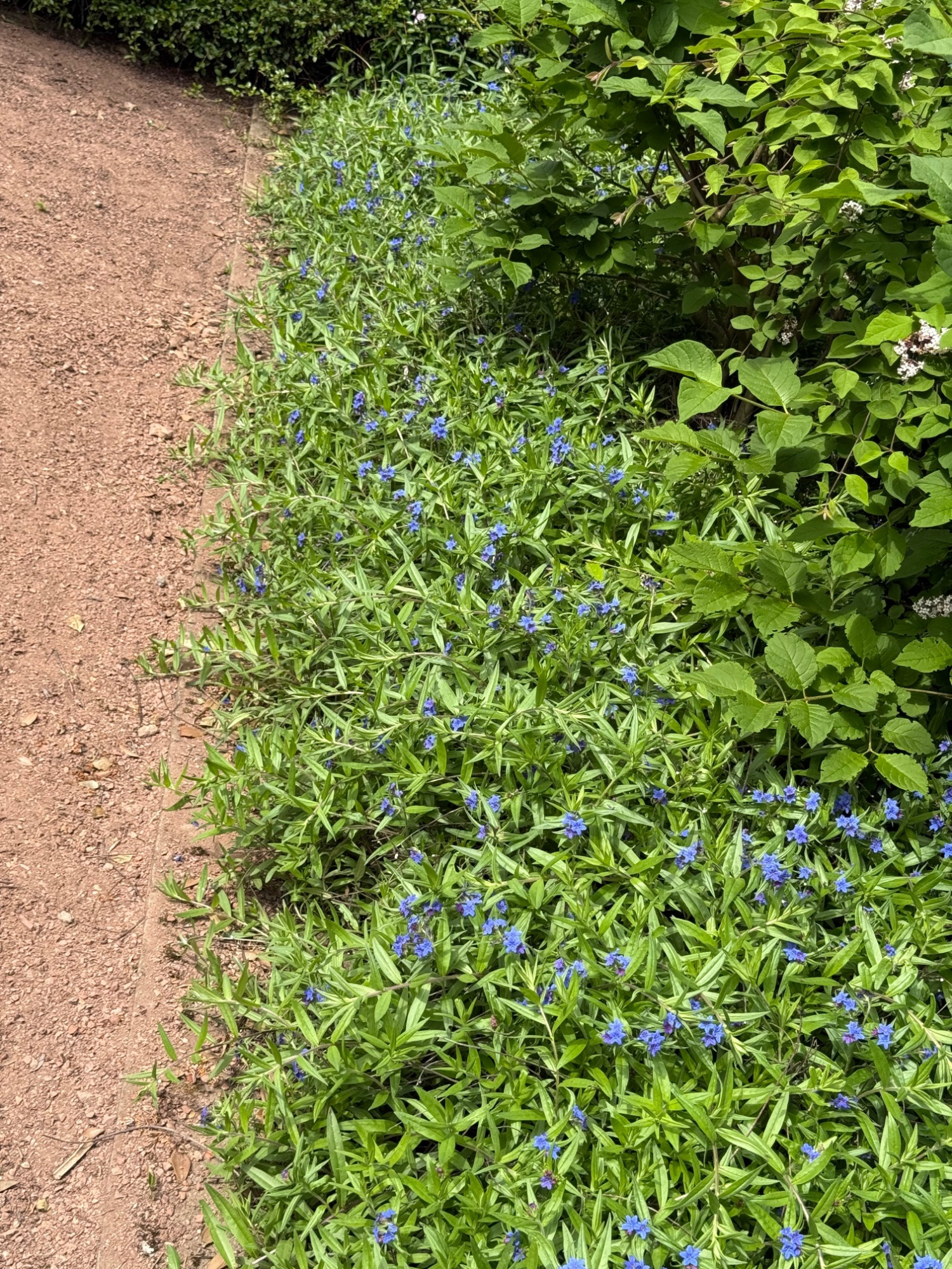 sowas hab ich auch in meinen Gärten, aber man sollte sich nicht täuschen: die machen schwächere Stauden durchaus platt. Rosen mit ihren tiefen Wurzeln stecken die weg, aber schon Pfingstrosen haben Probleme, auch horstige Astern sind bei mir überrollt worden. Ist ne Pflanze für große Gärten mit Ecken die man eingiermaßen pflegeleicht haben will mit Monokultur. Wenn sie in den Rasen wachsen - und das machen sie heftig - hat man schnell einen Todesstreifen von ca. 10-20cm in dem ständig gewühlt wird und nichsts wächst. Da macht eine Beetkante Sinn.