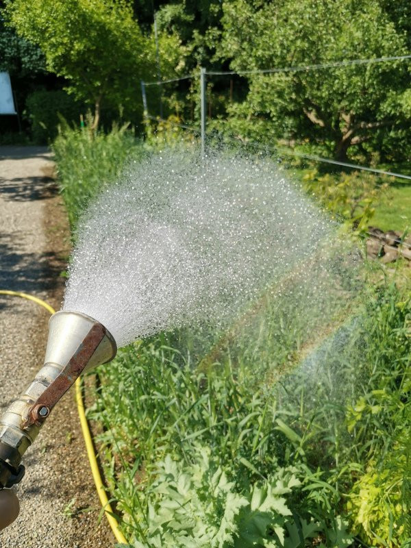Seit Ende April nix, das aufgefangene Wasser vom Starkregen ist leer, heute morgen war diverses eingerollt oder schlapp.