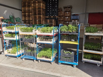 Ich hatte Anfang März gesät, vor 3 Wochen die ersten Blüten abgemacht, weil sie viel zu weit für zu früh im Jahr waren. Eine gut entwickelte Jungpflanze kostet aktuell 1€. Ich habe keine mitgenommen.