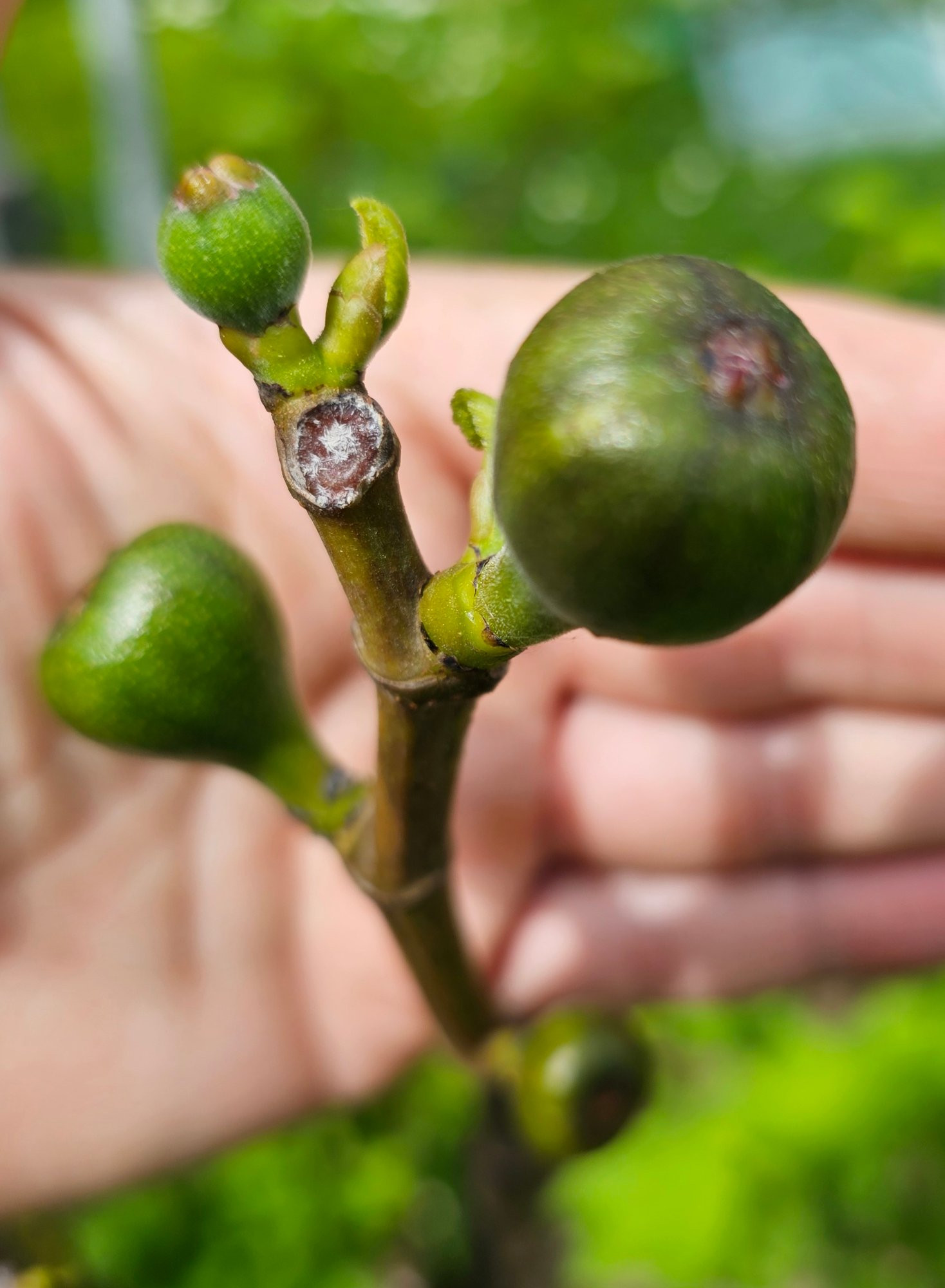 Amatrice Casale wie immer am besten. 7-10 Brebas pro Ast also gut über 100 die es hoffentlich dieses Jahr im Gegensatz um letzten überleben. 2.Negronne an der Mauer steht auch gut da. Leichte Erfrierungen an den ersten Blättern und Früchten aber gut am wachsen. Early Black 3-4 Brebas. Die kleineren Pflänzchen: Dottato, Brunswick, Dalmatie, Brogiotto Nero erst langsam am austreiben.