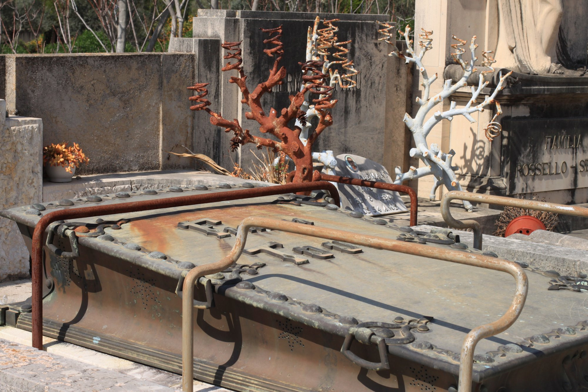Als ich fast zehn jahre vorher in Palma de Mallorca war, habe ich die dortige alte Friedhof besucht. Alles sehr gedeckt, in Sandtönen. Auch nicht so grün, wie eine deutscher Parkfriedhof. Verständlich aber bei der Klima.