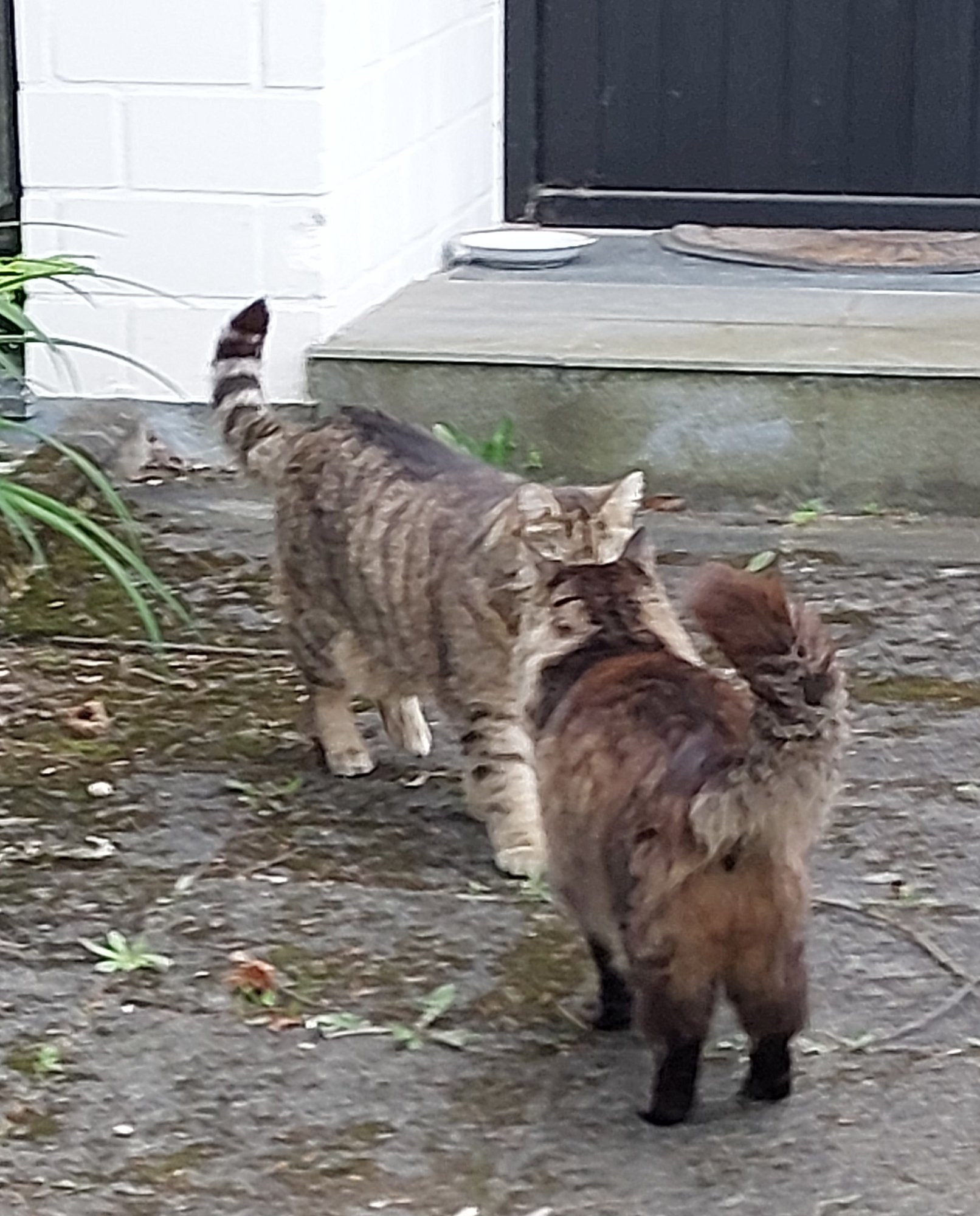 Hier der Kontakt mit Mimi (rechts) von gegenüber. Der Schwanz ist schon typisch. Vielleicht ein Mischling?