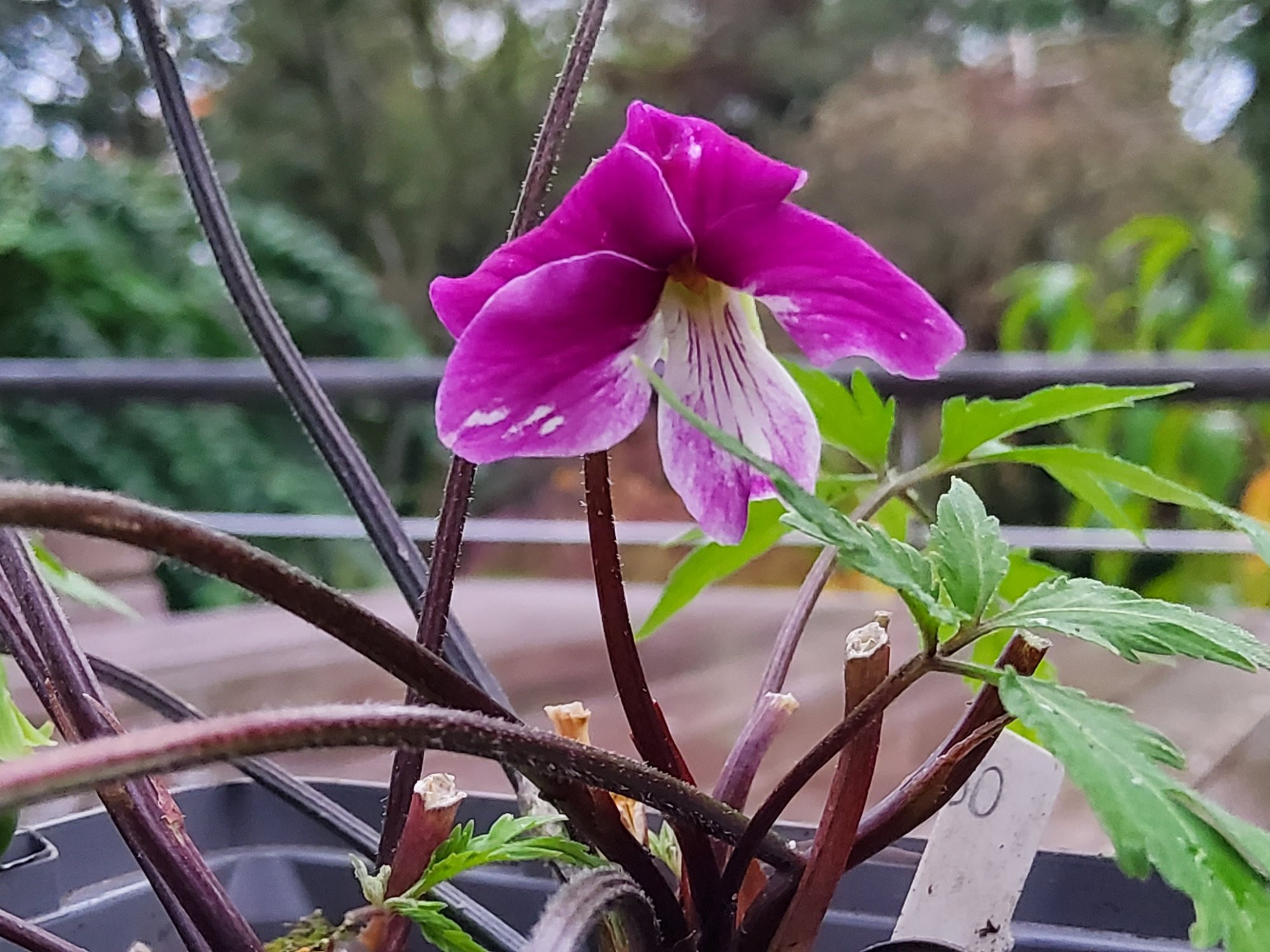 Ein Viola Hybrid, war ein Tauschobjekt. Ich habe mich gewundert, das es immer höher aus der Erde wuchs. Unterwärtz lauter kleistogame Blüten die die Pflanze hochdrücken. Ist so etwas bekannt?