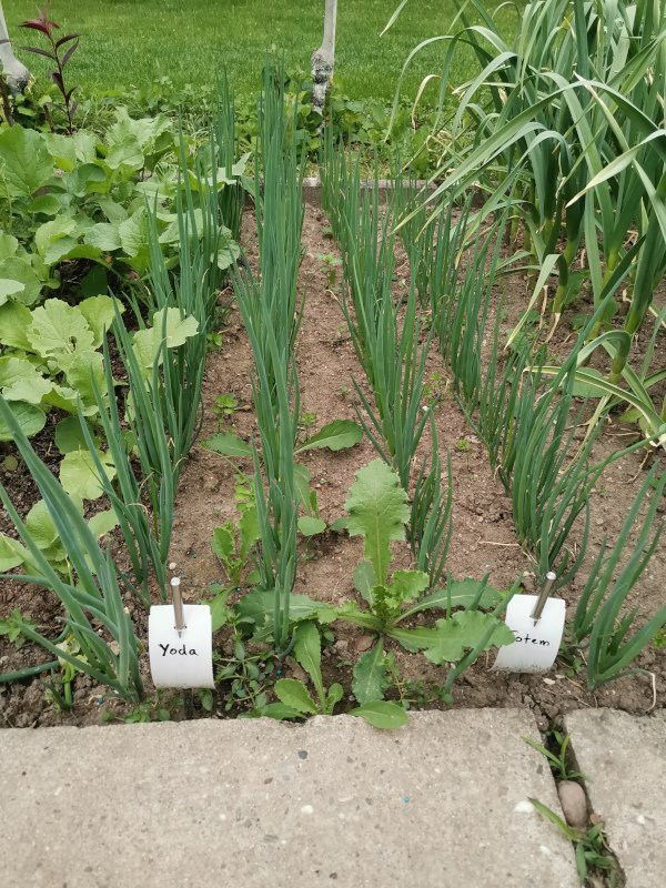 Letztes Jahr war schon die Mariolina der Favorit. Trotz Dürre mit zu wenig gießen, Hitze, zu langer Standzeit,... waren die Mariolina die Sorte von mehreren die am längsten auf dem Feld hielten, mitten im Sommer. Dazu haben sie auch schöne weiße Schäfte gehabt ohne Zwiebelbildung. Red Toga hatte ich schön öfter, solide. Yoda F1 als seltener Hybrid fand ich mal interessant, aber zumindest beim Wachstum zunächst kein Vorteil gegenüber den anderen Sorten. Totem hab ich auch das erste Mal, halb fertig zunächst optisch von Yoda F1 nicht zu unterscheiden. Heraus sticht gerade auf jeden Fall wieder Mariolina, wo die Hälfte schon optisch deutlich kräftiger steht und man schon vorsichtig mit der Ernte beginnen könnte, im Gegensatz zu allen anderen Sorten. Möglicherweise kommt Mariolina aber auch besonders gut mit Trockenheit und Hitze zurecht und bei nasskaltem Wetter hätten dann andere Sorten die Nase vorn? Denn geregnet hat es seit dem Pflanzen nur ein Mal wirklich. Und gießen tue ich sie selten, da haben andere Pflanzen gerade Vorrang.