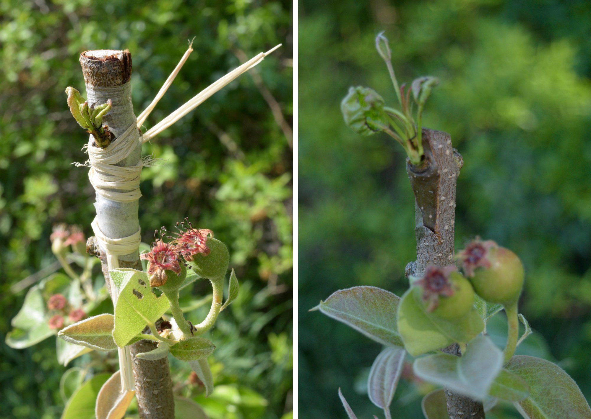 Hier der Austrieb von Bosc auf Gräfin (darunter Williams).