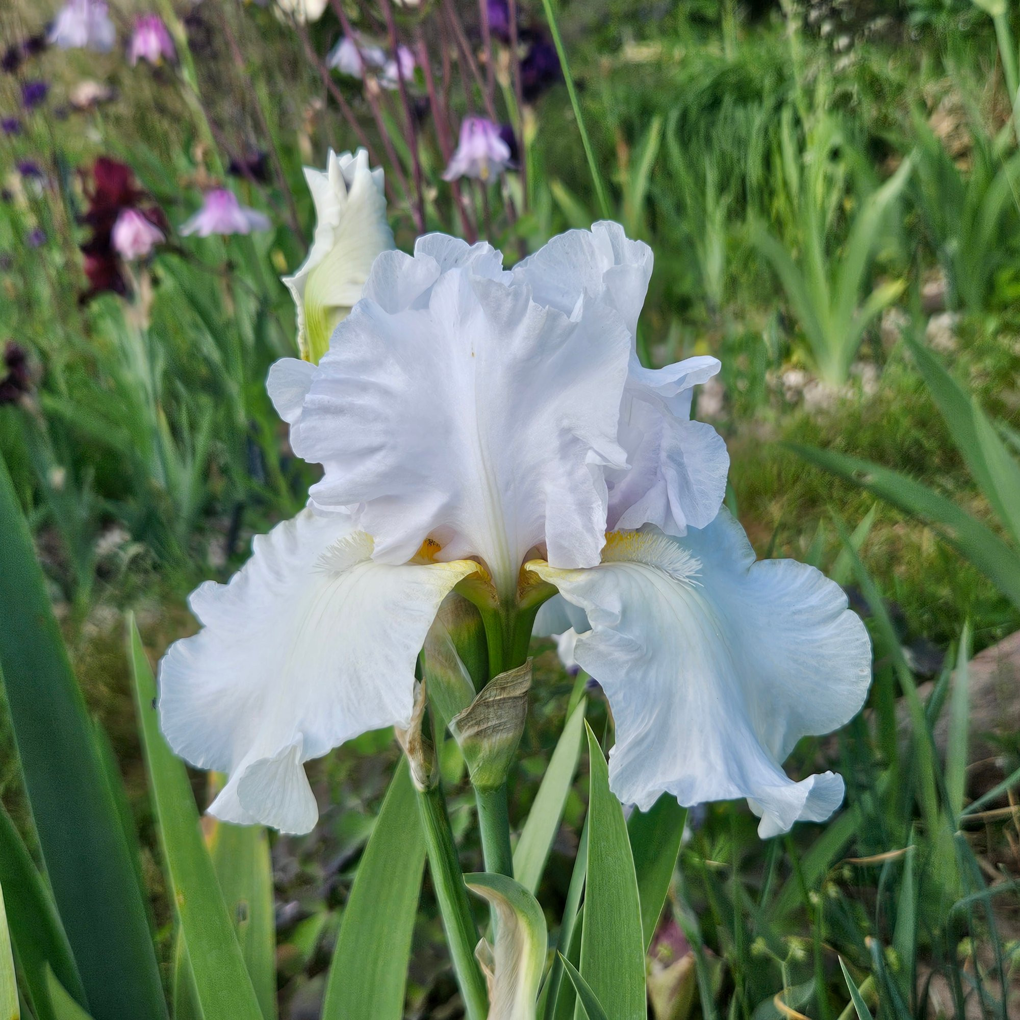 Luise bekam ich von einer Gartenauflösung. Könnte das 'Helen Louise' (E. Greig Lapham, R. 1951) sein? Gestern auf meiner üblichen Wegstrecke mal wieder an einer besonderen Iris angehalten, ich finde die sieht aus wie Luise. Und sie ist in Gesellschaft der üblichen alten Gartenfreundinnen. Nächstes mal werde ich dort klingeln und nach dem Namen fragen aber vielleicht kommt hier ja was aus dem Schwarm-Wissen.