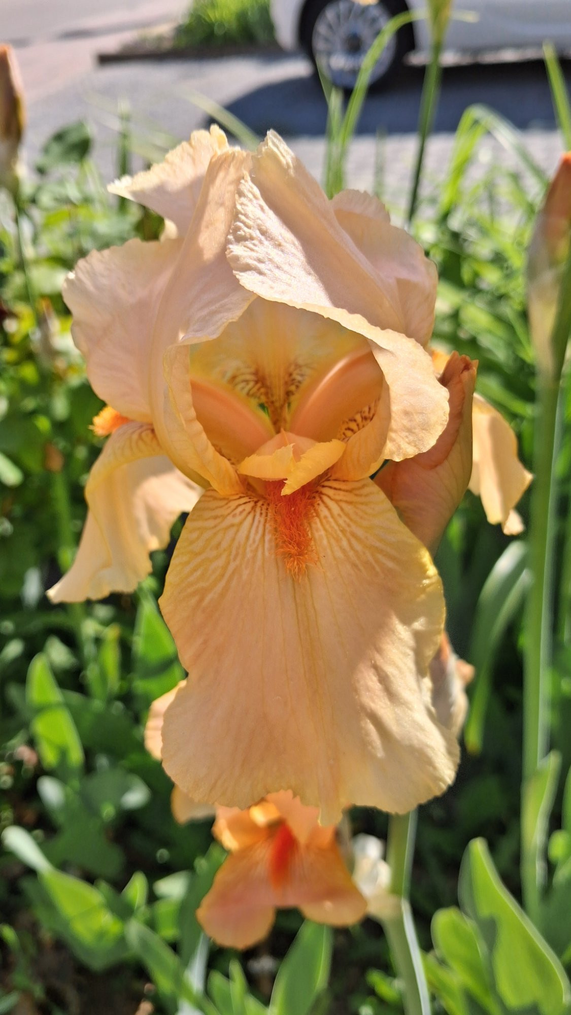 Luise bekam ich von einer Gartenauflösung. Könnte das 'Helen Louise' (E. Greig Lapham, R. 1951) sein? Gestern auf meiner üblichen Wegstrecke mal wieder an einer besonderen Iris angehalten, ich finde die sieht aus wie Luise. Und sie ist in Gesellschaft der üblichen alten Gartenfreundinnen. Nächstes mal werde ich dort klingeln und nach dem Namen fragen aber vielleicht kommt hier ja was aus dem Schwarm-Wissen.