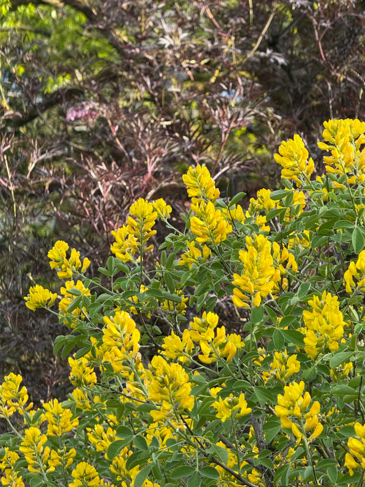 Jedenfalls sind schwarz blättrige Pflanzen ziemlich gute Hintergründe für gelbe Schmetterlingsblüten. Ohne es direkt zu planen, habe ich tatsächlich einen Goldregen vor einer dunkel selbigen Haselnuss gesetzt, welche aber auch nur im Frühjahr, also zum Zeitpunkt der Blüte des Goldregen dunkel ist. Mal schauen, wie es sich so entwickeln wird.