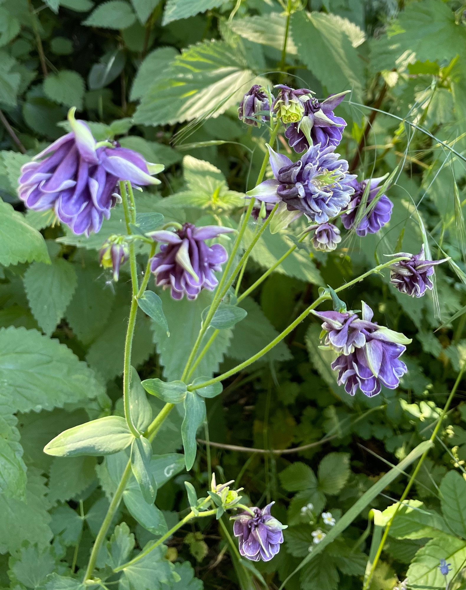 Ich war heute auf Akeleienjagd. Es gibt zwei leere Häuser in der Nachbarschaft, keiner mäht. Die Vorgärten sind entsprechend verwildert