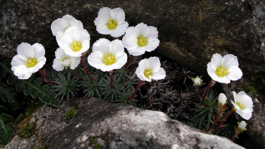und zum Schluss der heutigen Vorstellung noch eine der schönsten und frühblühendsten Saxifragen: Saxifraga burserana aus den Alpen. Diese Pflanze braucht etwas mehr Aufmerksamkeit als viele der Hybriden. Insbesondere reagiert sie auf zu starke Sonneneinstrahlung sofort mit Verbrennungen.