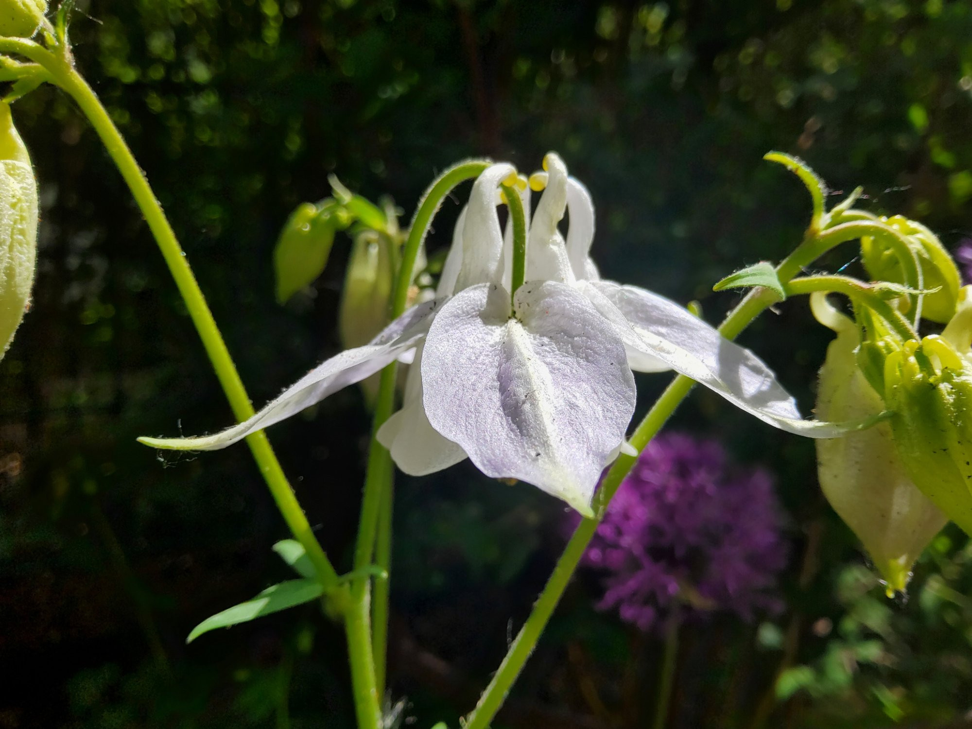 Die langspornige weiße habe ich letztes Jahr gekauft, sie ist sehr niedrig. Eigentlich dachte ich, sie hält nie durch, wollte vor allem Samen. Dann blühte sie im Herbst etwas nach und sieht jetzt so aus.
