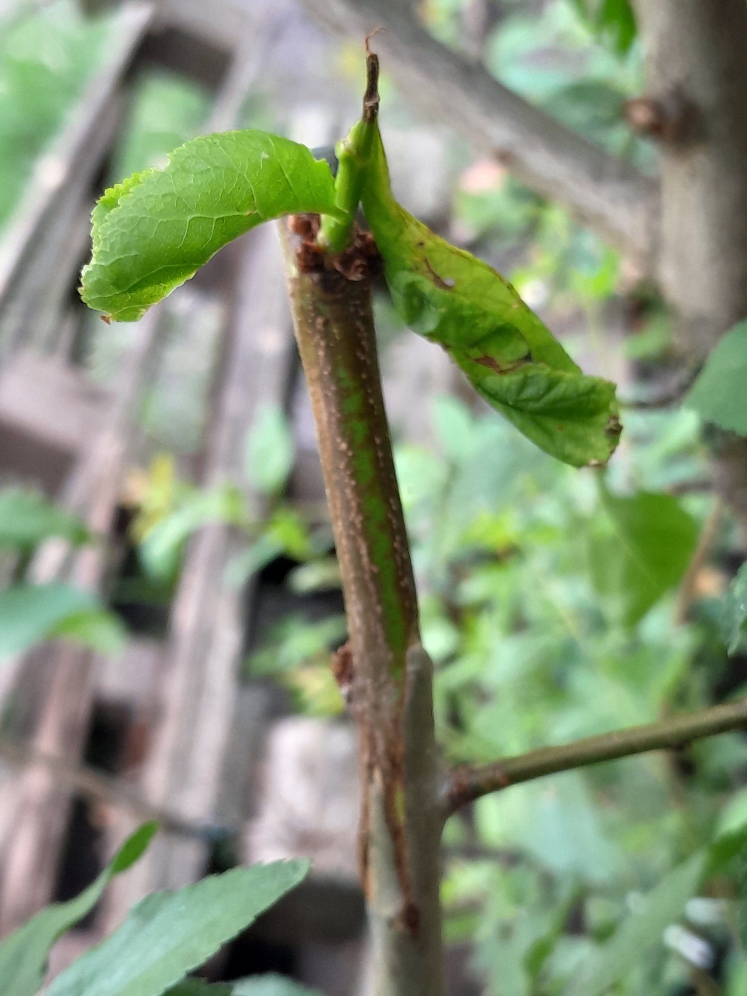 Ich hätte eine Frage zu einer Pfirsichveredelung. Also die untere Knospe hat Blätter bekommen, aber treibt nicht wirklich.