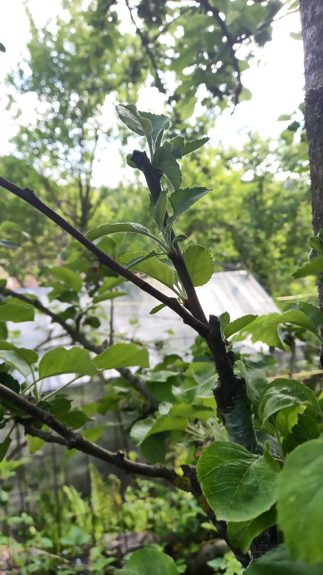 So ein Schadbild habe ich an einem Mehrsortenbaum auch. Fast sämtliche Neuaustriebe einer der aufveredelten Sorten sehen so aus und es geschieht sukzessive. Es sieht zwar wie ein Frostschaden aus, wir hatten aber nach dem Austrieb keinen Frost mehr. Ich habe bei mir irgendeinen Triebstecher in Verdacht, der sich aus irgendeinem Grund nur auf die eine Sorte stürzt.