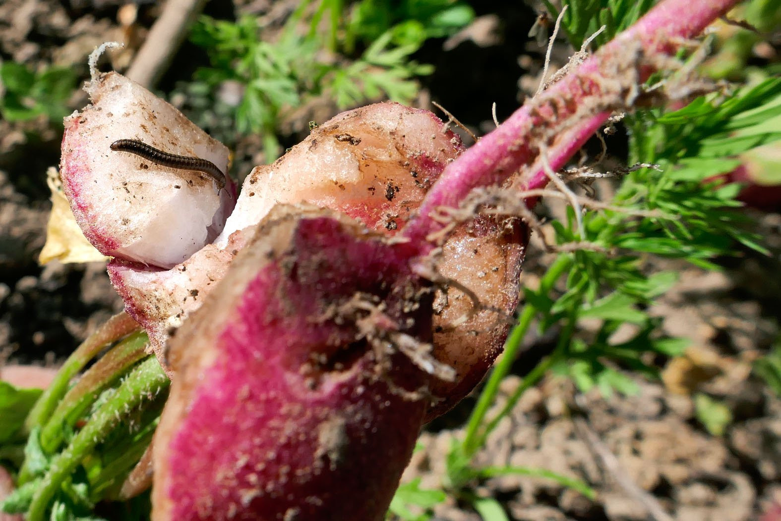 Ich habe die Radieschen in Reihe gepflanzt, dazwischen Karotten. Sind die Karotten dann auch so gelöchert?