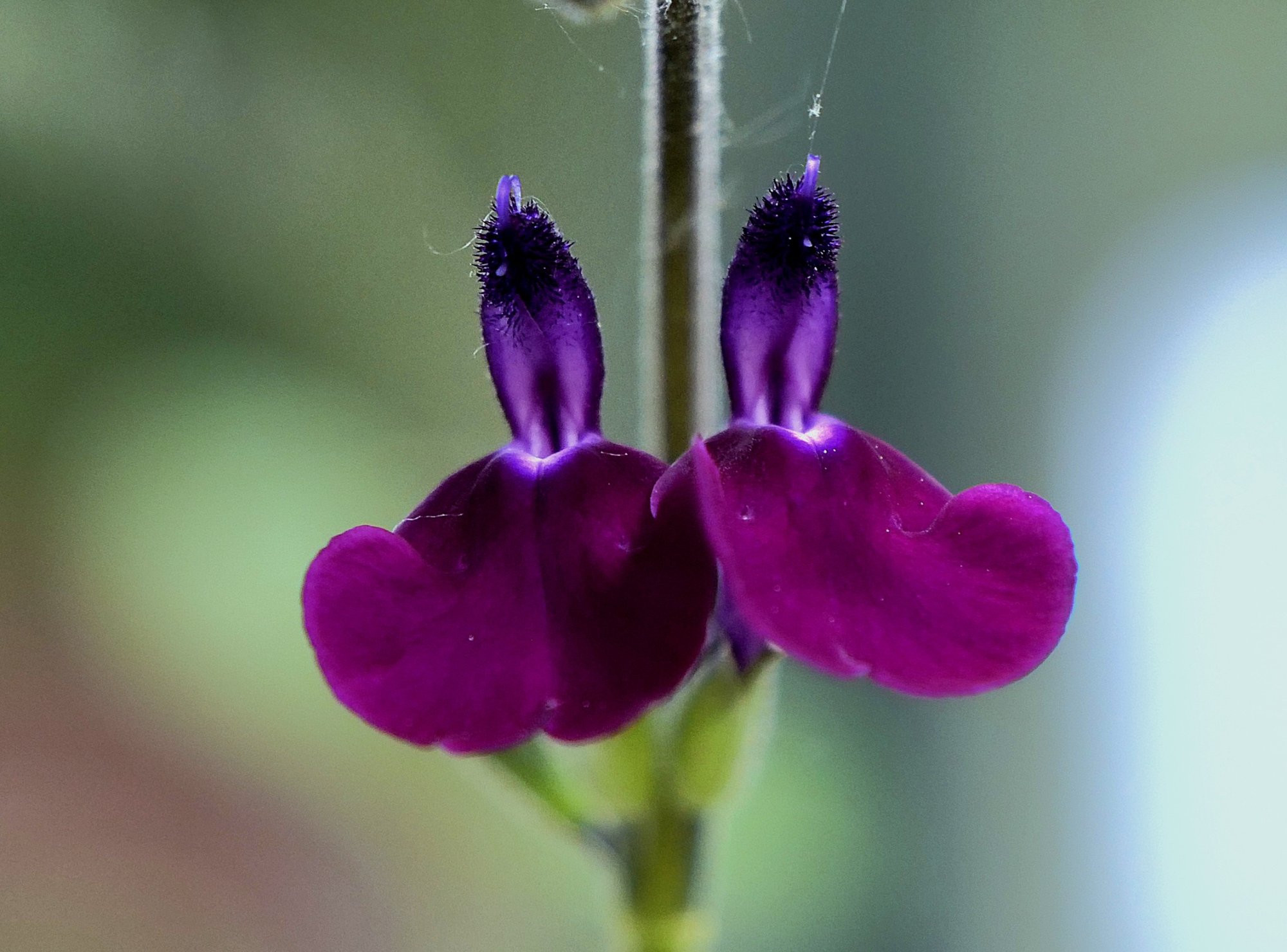 Salvia 'amethyst lips ' zeigt die ersten Blüten noch monochrom