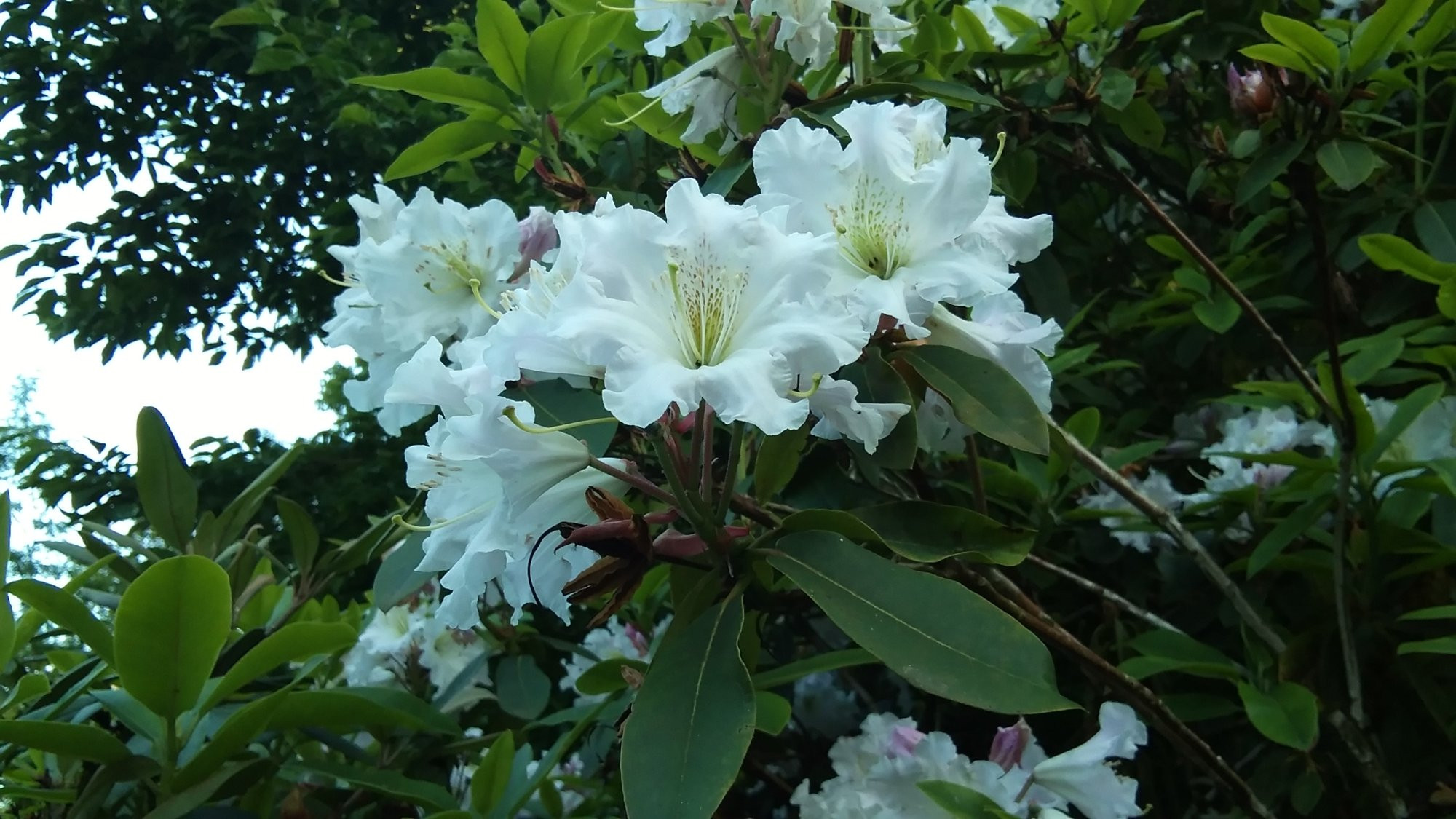 Hallo goworo, einen rein Weißen Rhodo's hab ich auch, der blüht noch später. Nach den Namen darfst mich nicht fragen, vor vierzig Jahren aus Samen vom DRG gezogen