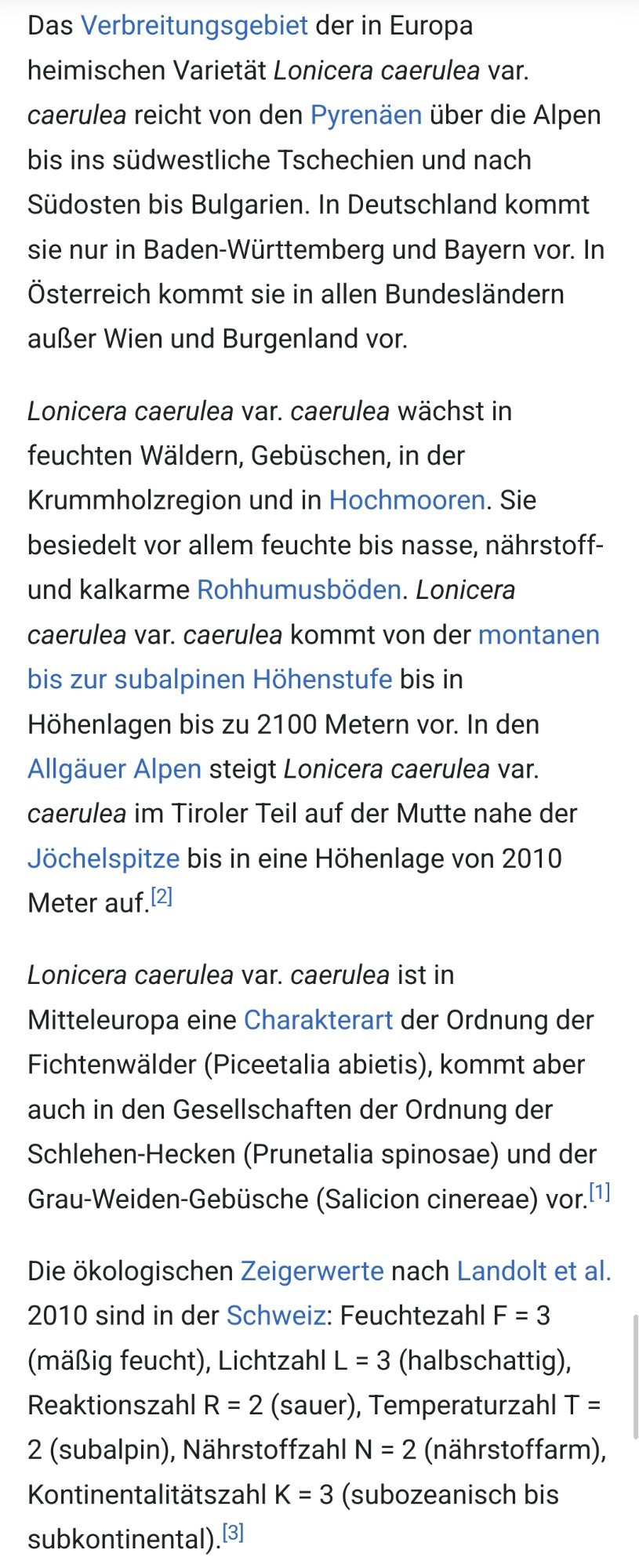 Kleiner Fun fact. Die Art ist under der Subspezies Lonicera caerulea var. caerulea auch in Deutschland/Österreich vertreten. Hier der Wiki-Artikel der Blauen Heckenkirsche.