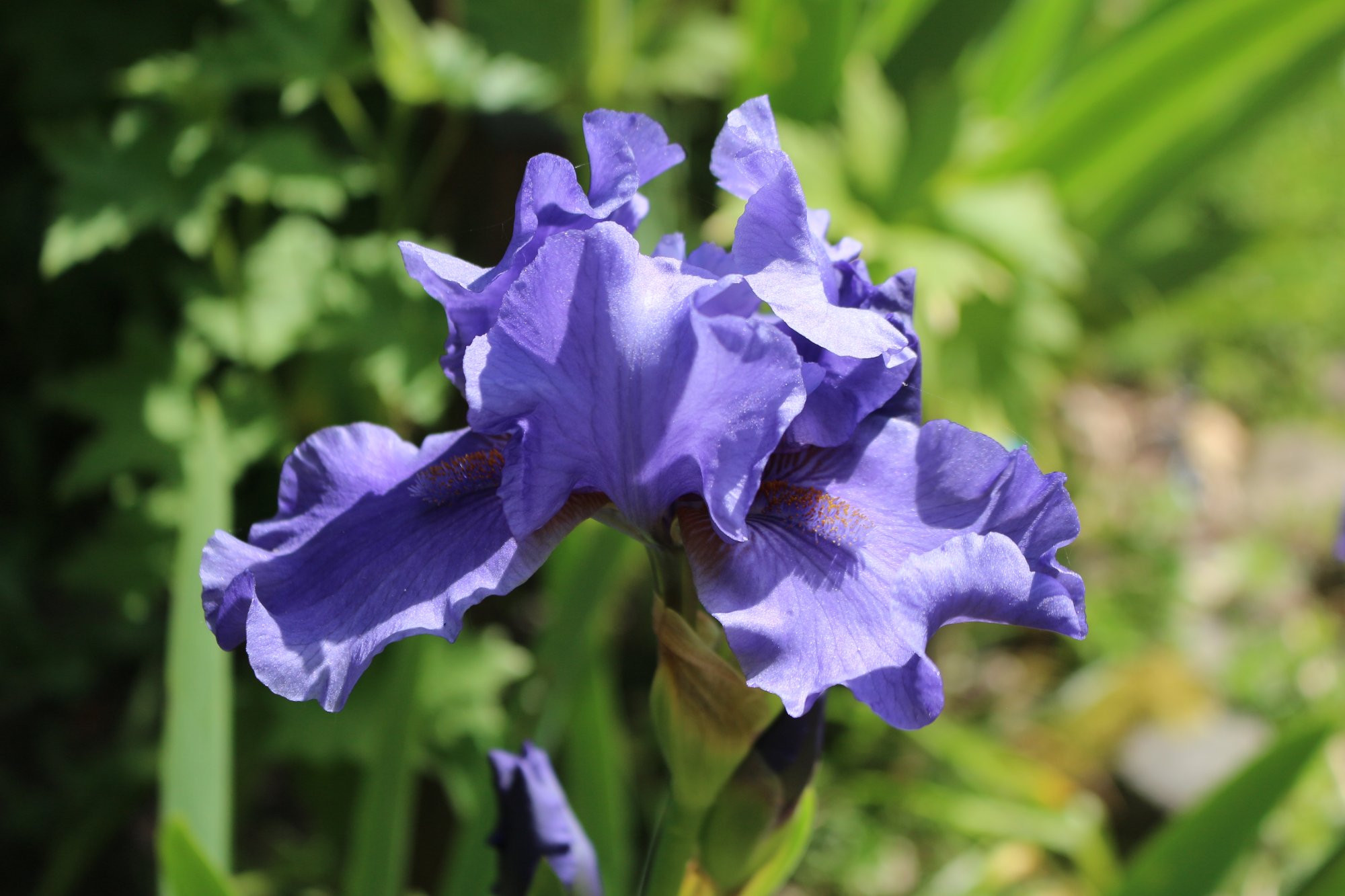 Erstblüte einer namenlosen, mittelhohen Blauen, die schon zwei, drei Jahre da ist aber vorher nicht blühen wollte: