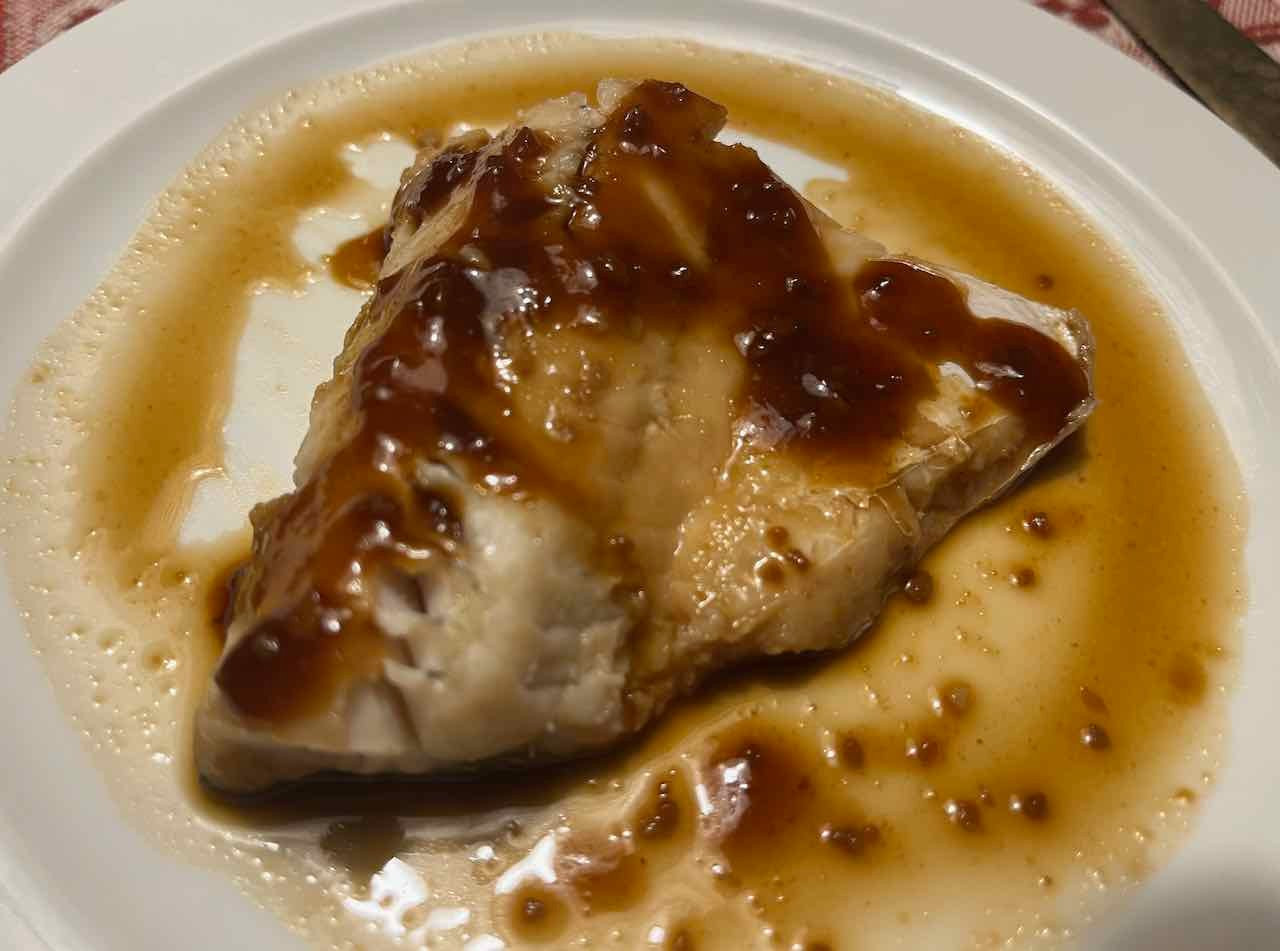Zander, mit Teriyaki- und Sojasoße, mit Knoblauch und Ingwer mariniert und gedämpft sowie Gobbetti aglio e olio zum Sauvignon blanc 2022 "Whitehaven" aus Neuseeland