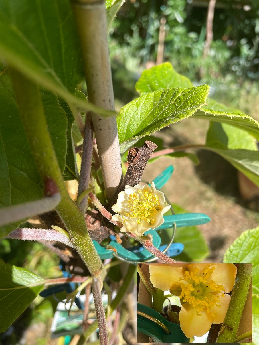 - Hatte ein Kolomika Adam gepflanzt, der blüht auch schon etwas, soll angeblich auch weibliche Chinensis Kiwis bestäuben können, aber der Erfolg ist eher mässig (Mini-Blüten und der Zeitraum passt nicht ganz)