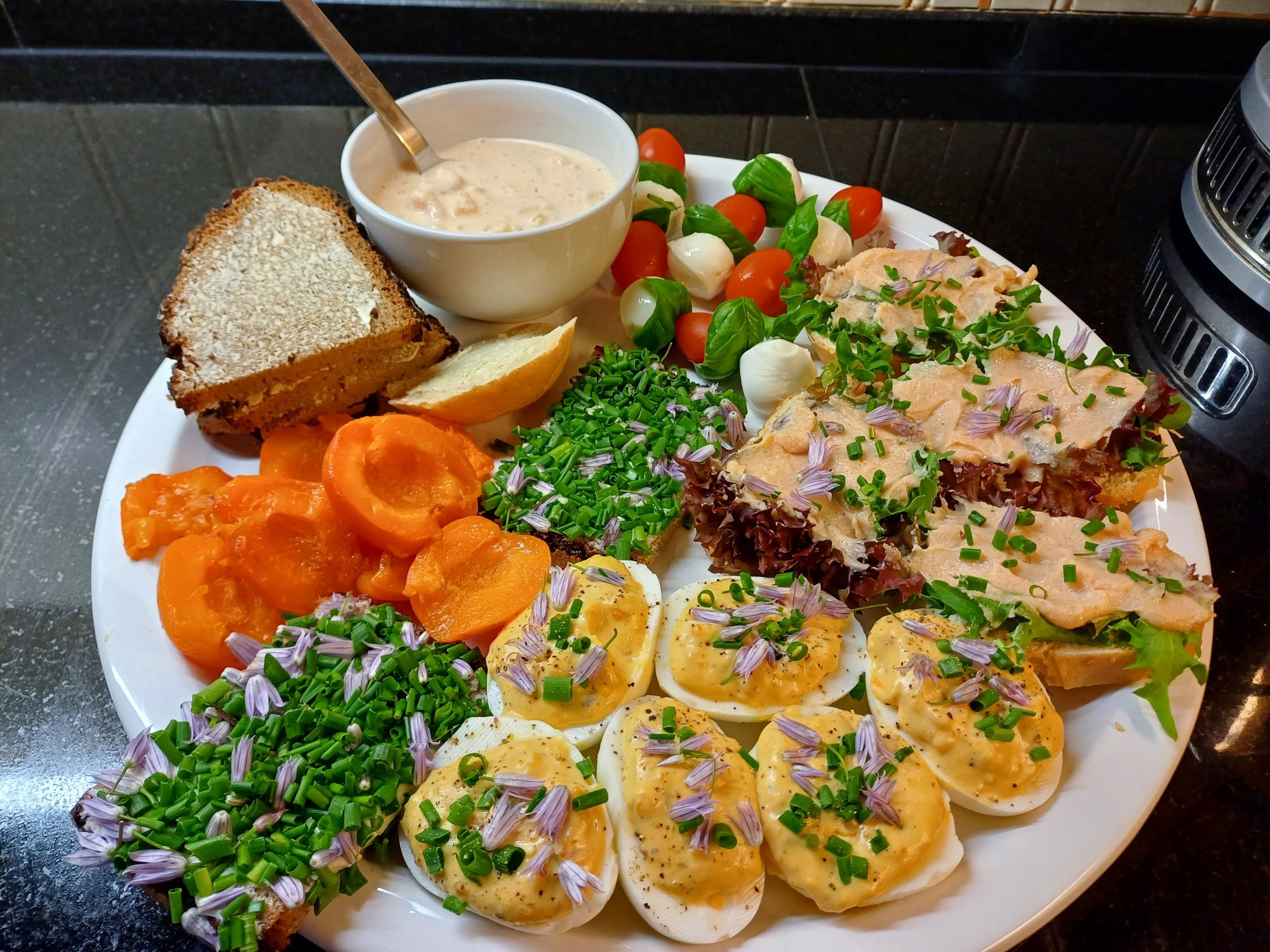 Bei uns gab es mal wieder gebeizte Dorade. Ich habe kein Foto gemacht, weil ich es schon so oft gezeigt habe.