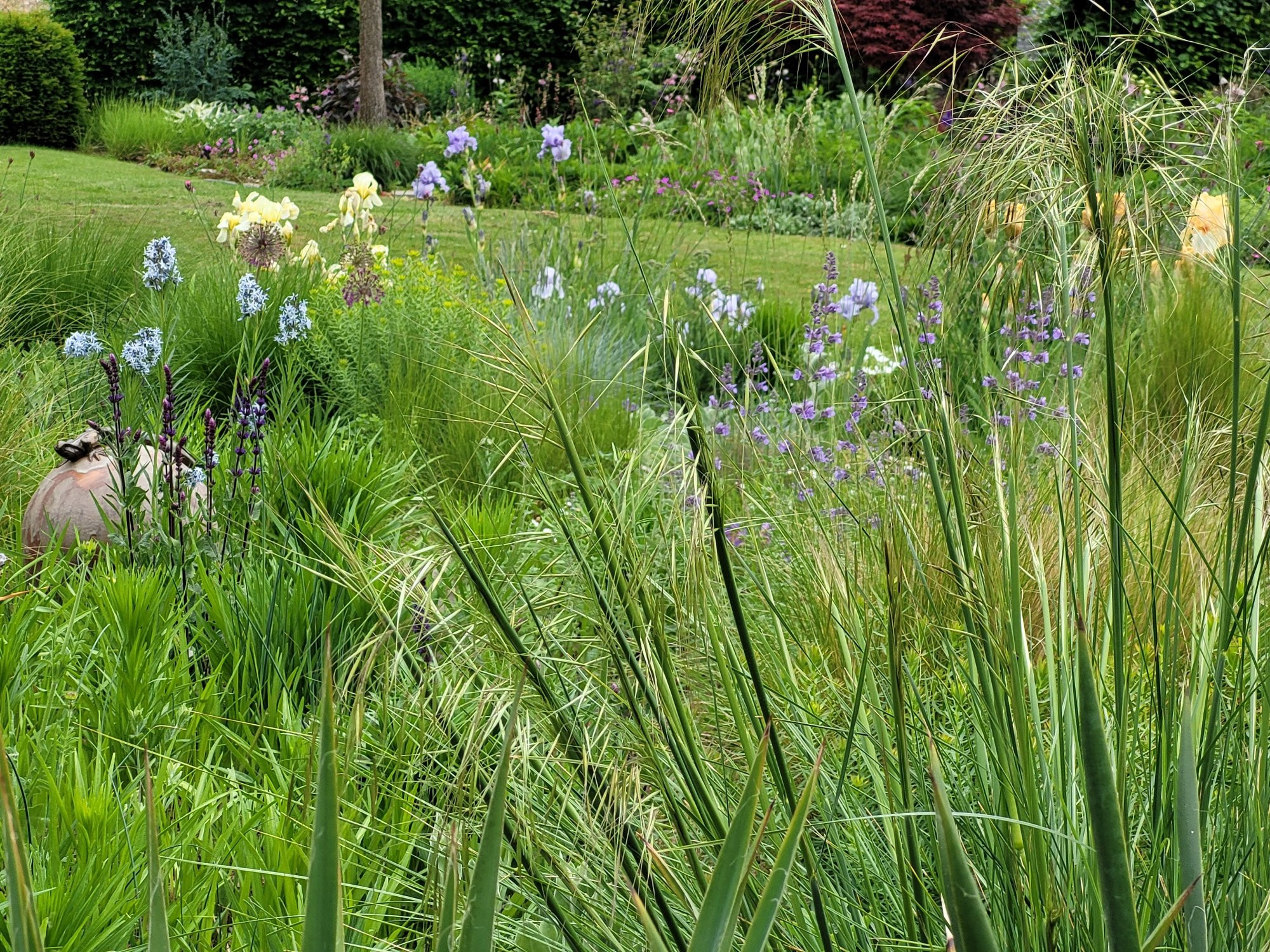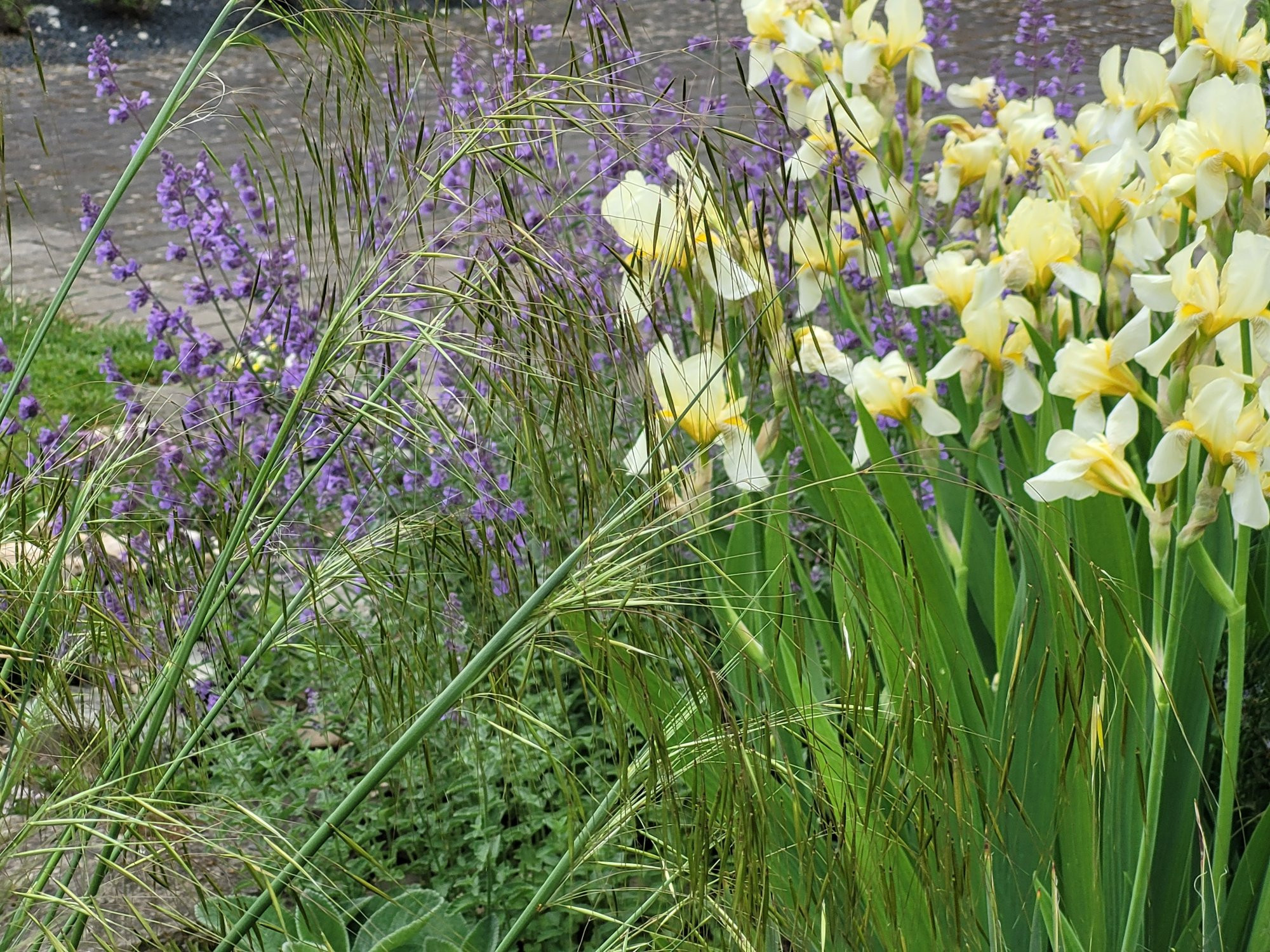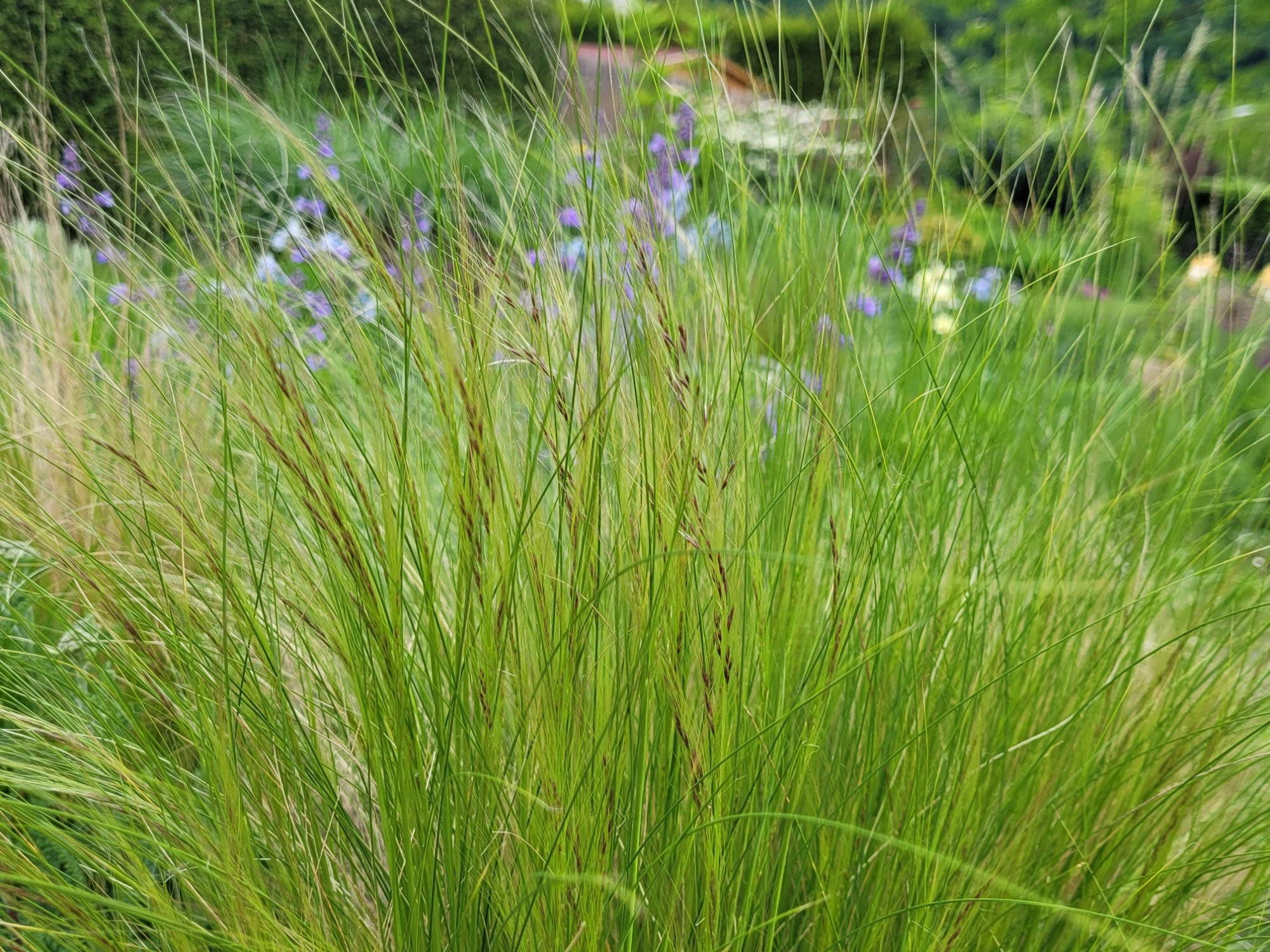 Auch Stipa (Nasella) tenuissima blüht nun schon schleierartig und anmutig.