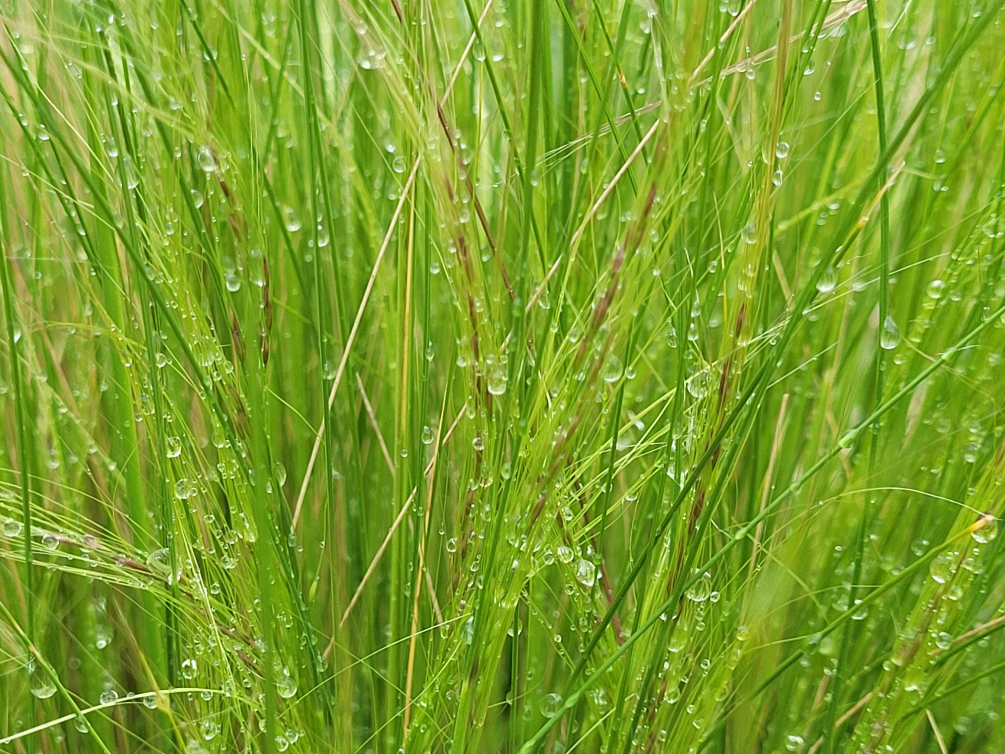 Und Briza media 'Zitterzebra' hatte ich ja schon ausgiebig vorgestellt... Bild gerade eben im Regen.