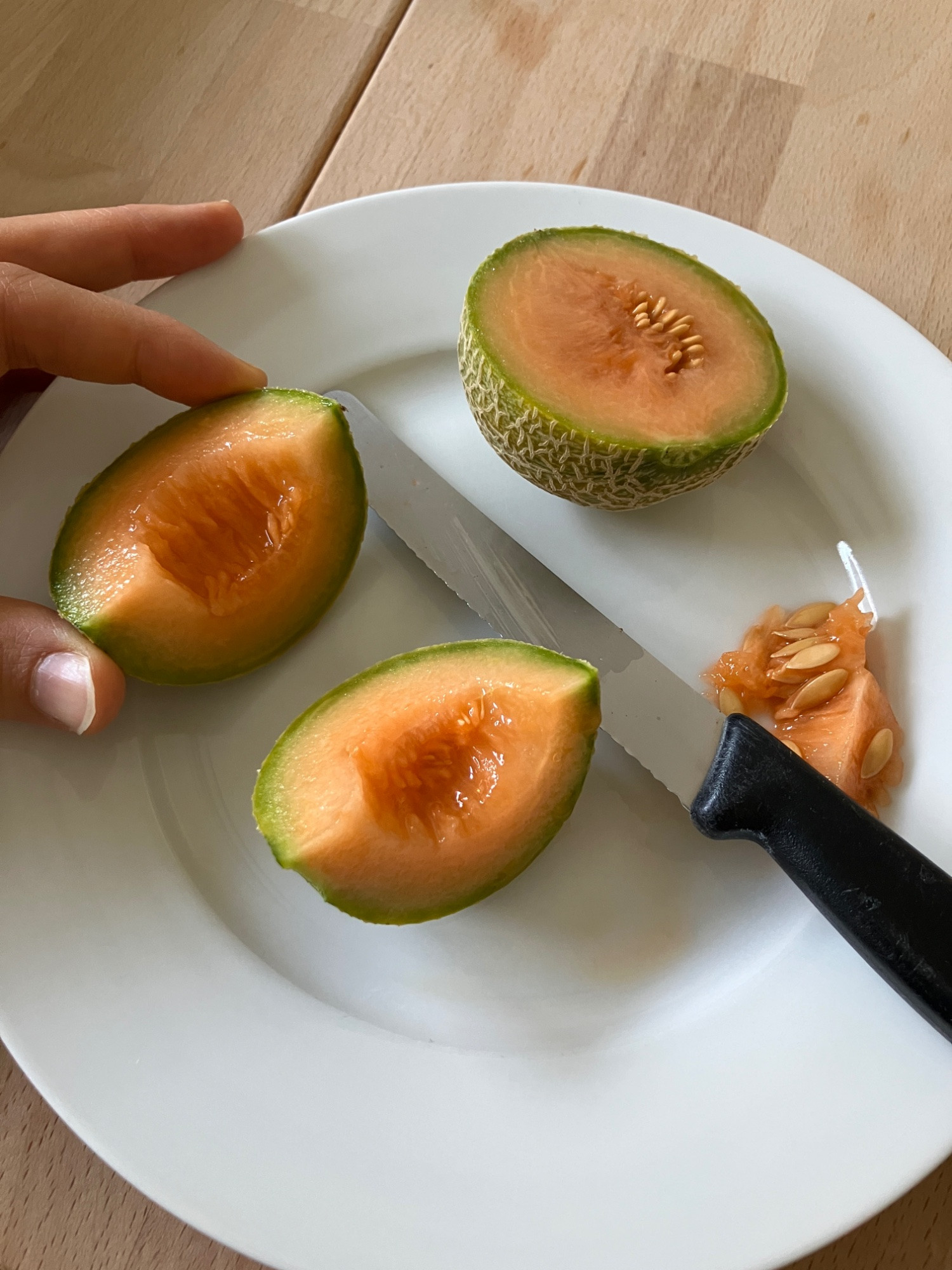 Charentais ist prinzipiell sehr gut für Mischung und Weiterverarbeitung geeignet, weil sie -reif- so aromastark ist. In Sekt passt sie, in Bowlen, Obstsalate, Liköre (Torboli, Dolce Cilento). Problem, sie ist nicht reif. Aber der nächste Sommer kommt, neue Chance.