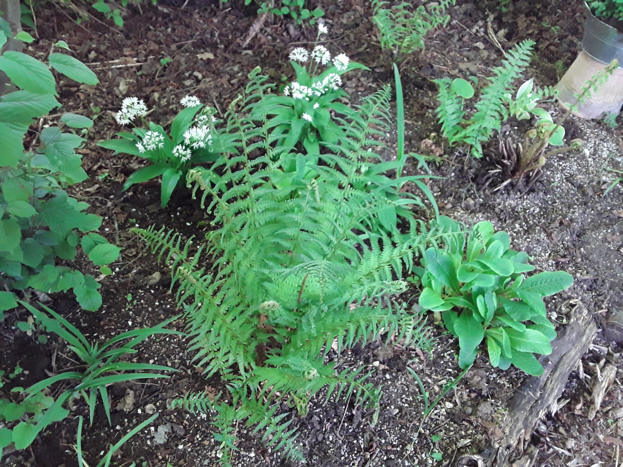 Die Rotschleierfarne sind hier zuverlässig die Nachzügler. Ich habe einen vom Hessenhof, auf der HP steht, dass er oft erst nach dem längsten Tag, also nach Sommeranfang, austreibt und das tut er auch so. Anfangs dachte ich, er sei verstorben und habe noch mal einen aus einer anderen Quelle besorgt, dieser treibt jetzt aus, während der vom Hessenhof noch ruht.