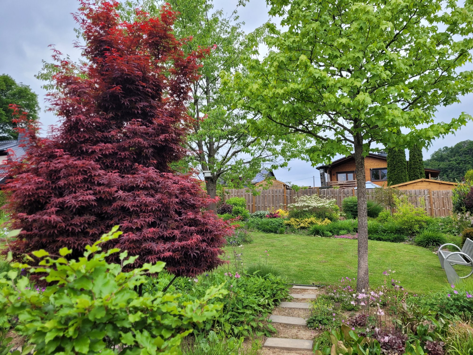 @Waldschrat: Dein als 'Garnet' betitelter Ahorn auf dem ersten Bild sieht mir nicht nach 'Garnet' aus, der rote 'Dissectum' weiter unten schon. Und klar wachsen die immer zum Weg, dort ist halt etwas mehr Licht, und Richtung Schatten wachsen die wenigsten Pflanzen. ;) Mit einem Zimtahorn habe ich auch schon geliebäugelt, aber dann doch eingesehen, dass hier der Platz dafür fehlt...