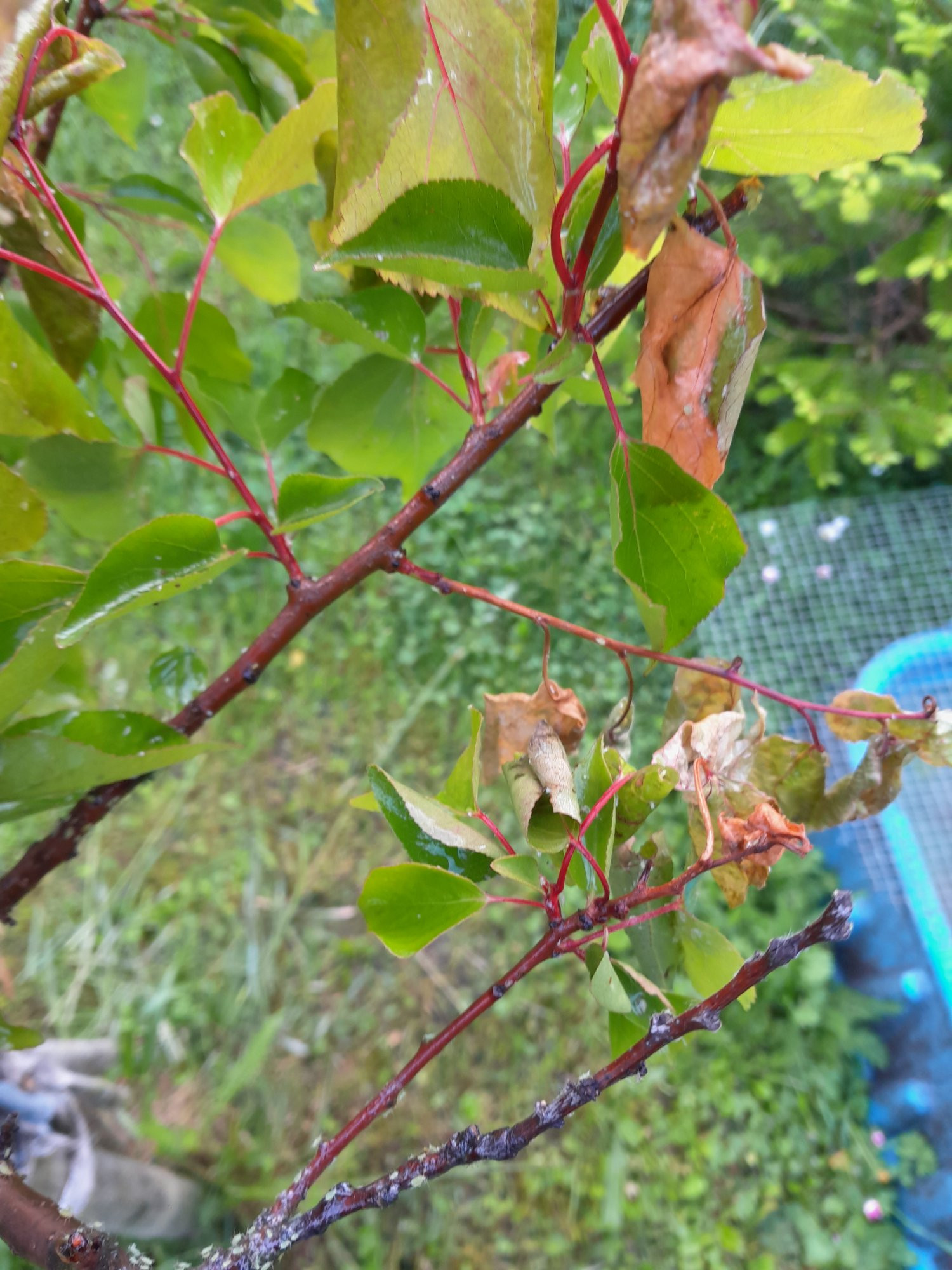 Nun werden aber immer mehr seitenäste von einem anderen Problem heimgesucht. Beginnend mit einem blattstiel wird die rinde braun und der ast stirbt graduierlich. Ist das monilia? Übertragen dir Läuse das?