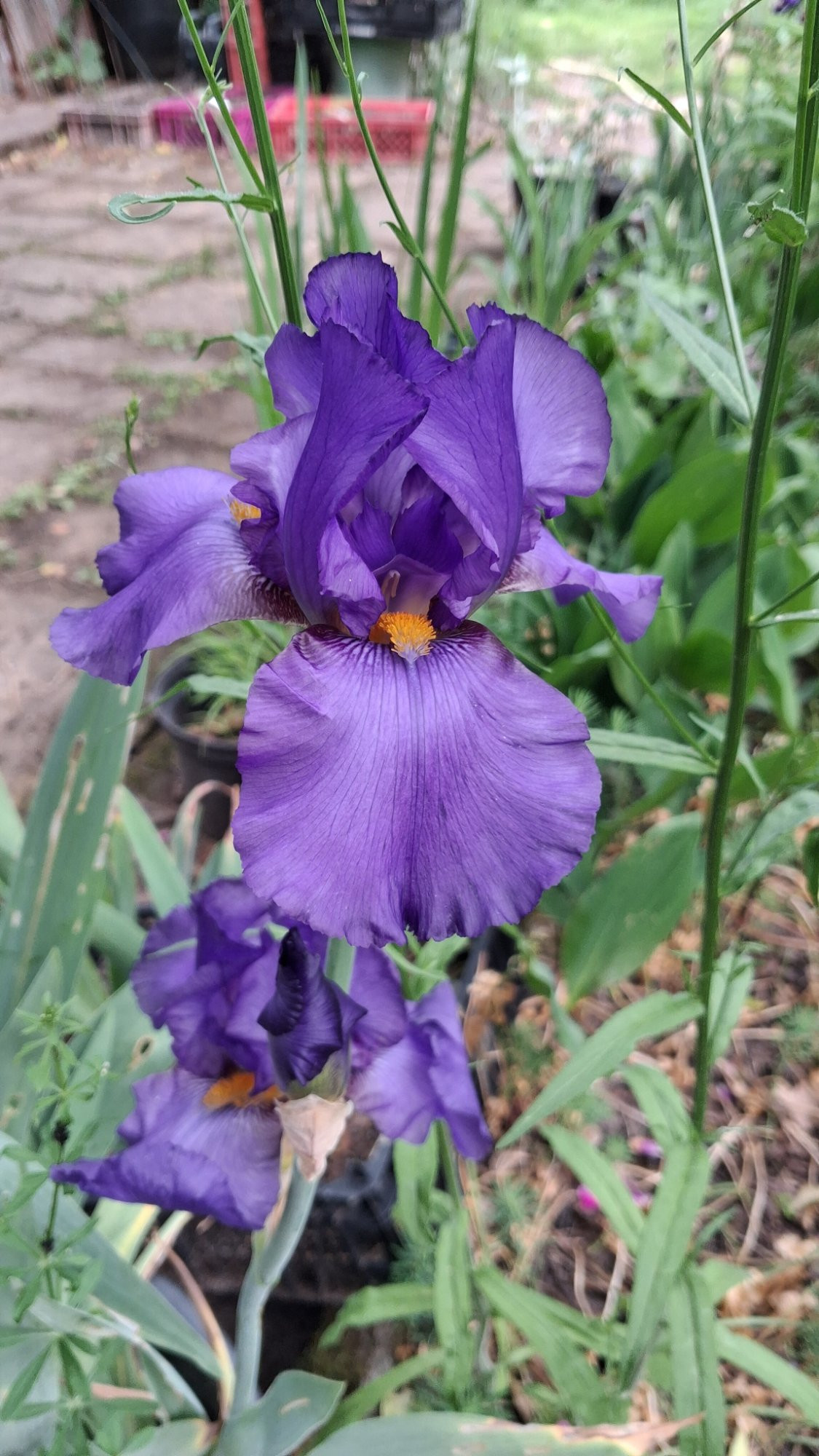 mein "verwilderter" Bestand von Rheintraube. Die Iris bei Juba ist weder eine Wildart noch eine Sorte, sondern eine der vielen Formen, die bei Schwertlilien vorkommen. Neglecta, Sambucina, Amoena, Variegata, Squalens ... Hier in Rheinhessen gibt es dafür praktische Namen. Die kleinsten sind kloone Schwertelscher und die großen sind groose Schwerteln. Norddeutsch wird wohl auch Namen kennen. Eigene. Gefühlte Namen.