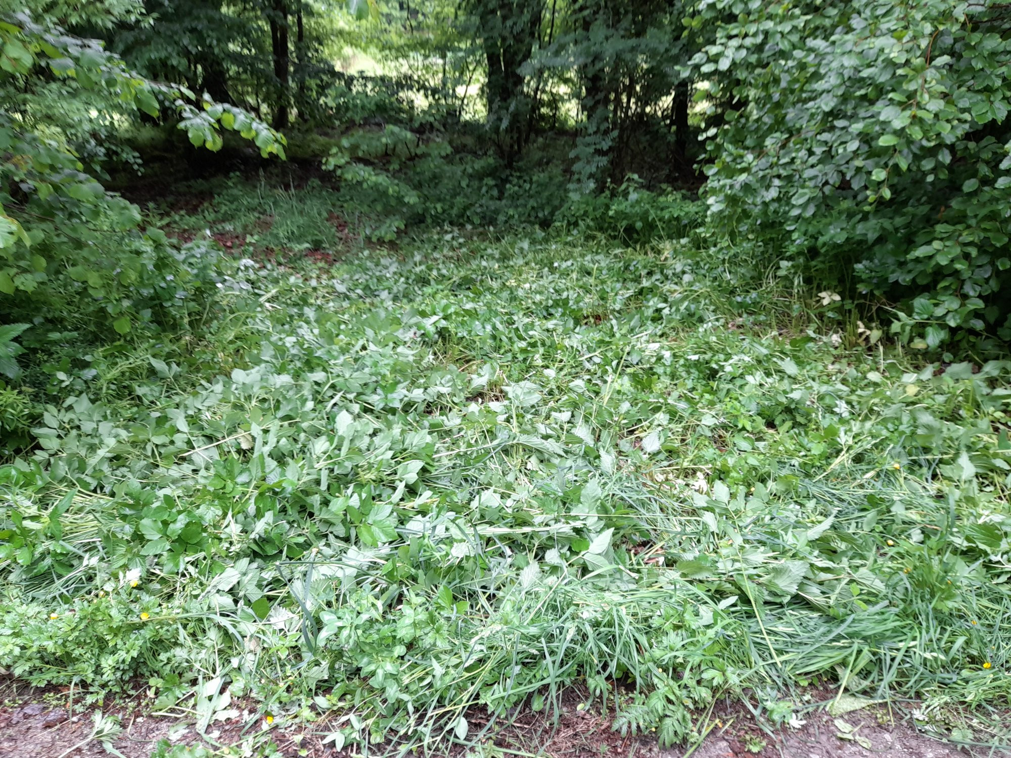An der Scheune Brennnesseln gesenst, damit die Schafe das noch wegfressen.
