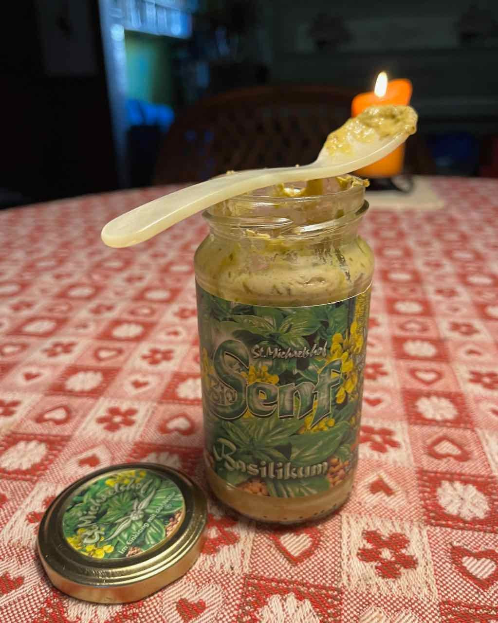 Nach Biergartenbesuch Pfälzer gebraten mit Basilikumsenf und Sauerkraut indisch gewürzt mit Paprika, Curry und Chili und über Rotweinschorle gedämpft zur "Petite Révolution"