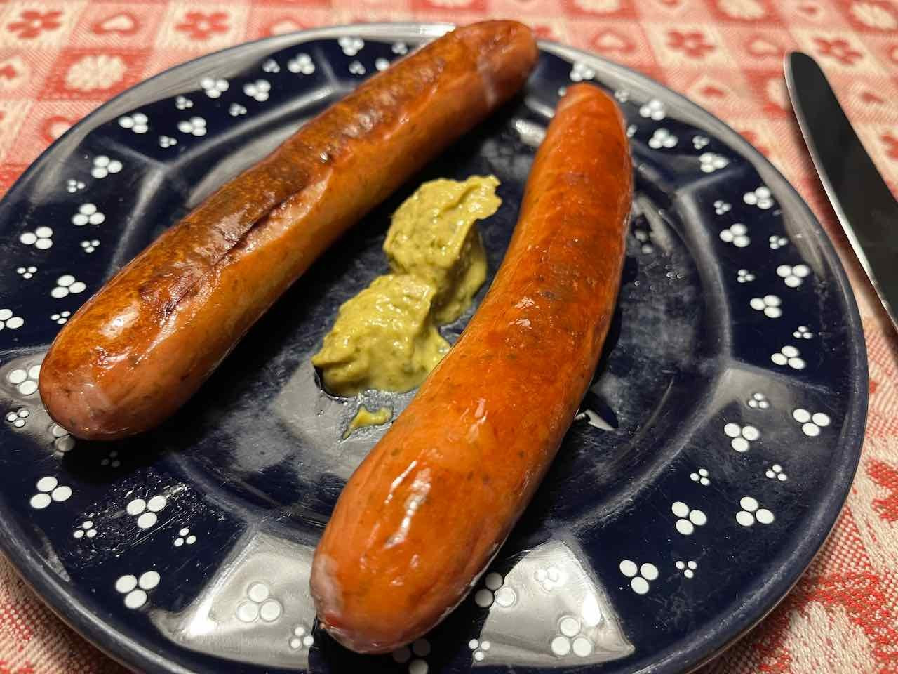 Nach Biergartenbesuch Pfälzer gebraten mit Basilikumsenf und Sauerkraut indisch gewürzt mit Paprika, Curry und Chili und über Rotweinschorle gedämpft zur "Petite Révolution"