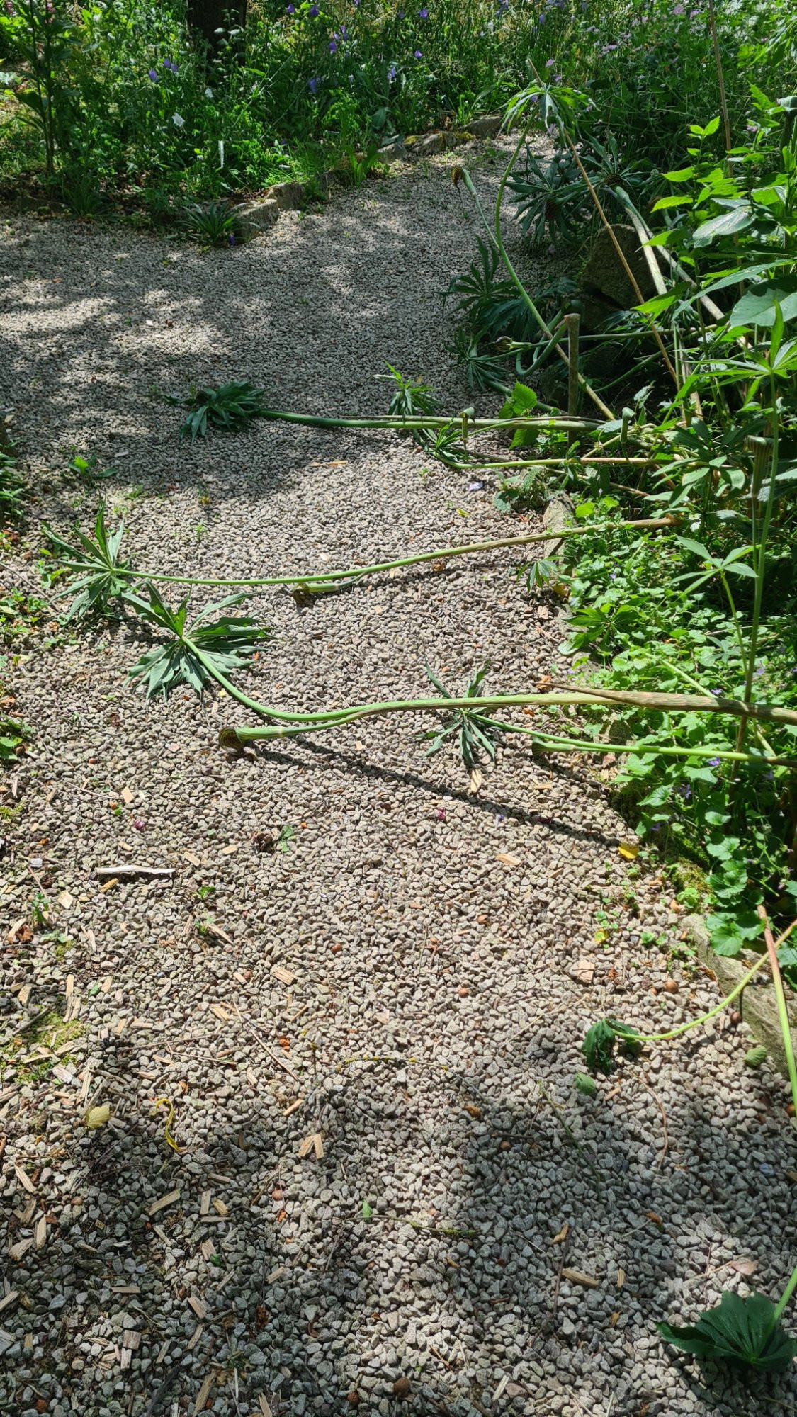 Typisch! Kaum ausgetrieben, schon beim leisesten Wind umgekippt! Jedes Jahr muss ich A. ciliatum anbinden. Und jedes Mal bin ich zu spät. Wie macht die das in der Natur???
