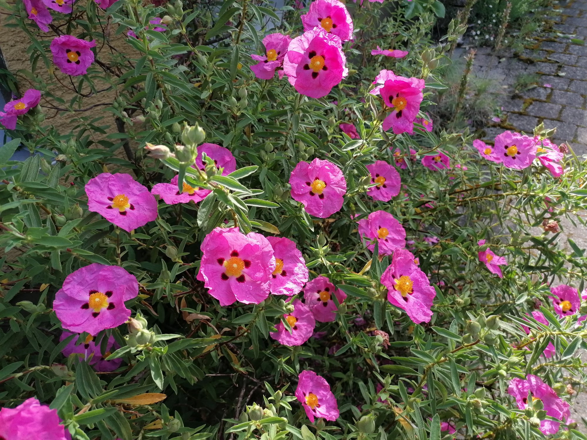 C. salviifolius und C. clusii sind mit der Blüte durch. Eine unbekannte, die x lenis grayswood pink ähnlich sieht aber strauchartig und höher wächst ebenfalls. C. incanus und C. x verguinii in voller Blüte