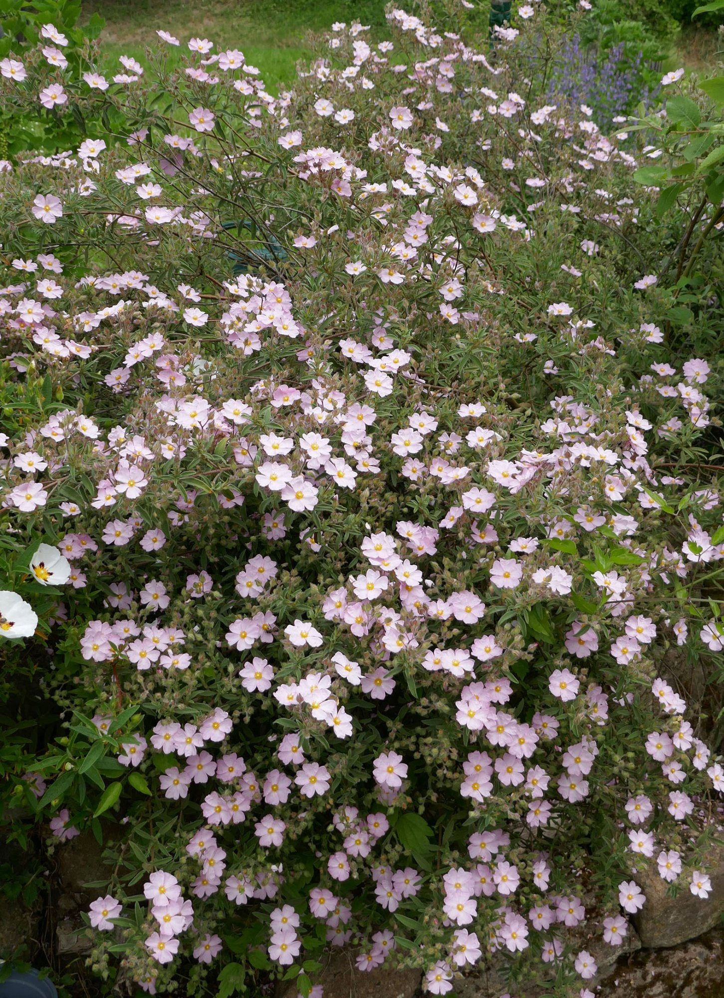 C. salviifolius und C. clusii sind mit der Blüte durch. Eine unbekannte, die x lenis grayswood pink ähnlich sieht aber strauchartig und höher wächst ebenfalls. C. incanus und C. x verguinii in voller Blüte