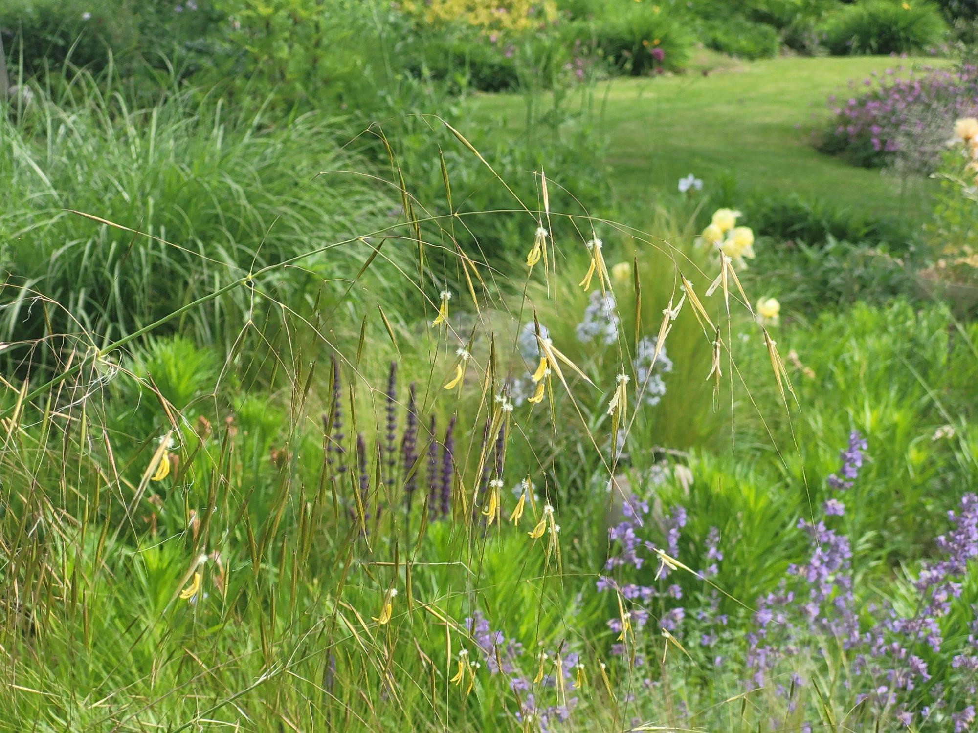 In den Niederlanden habe ich letztes Jahr in einem Garten eine Hakonechloa macra gesehen, die mehr als zwei Quadratmeter Fläche einnahm. Hier: Unsere Reiseleiterin meinte, es läge am hohen Grundwasserspiegel in den Niederlanden, dass das Gras dort so riesig sei. Es braucht also viel Feuchtigkeit.