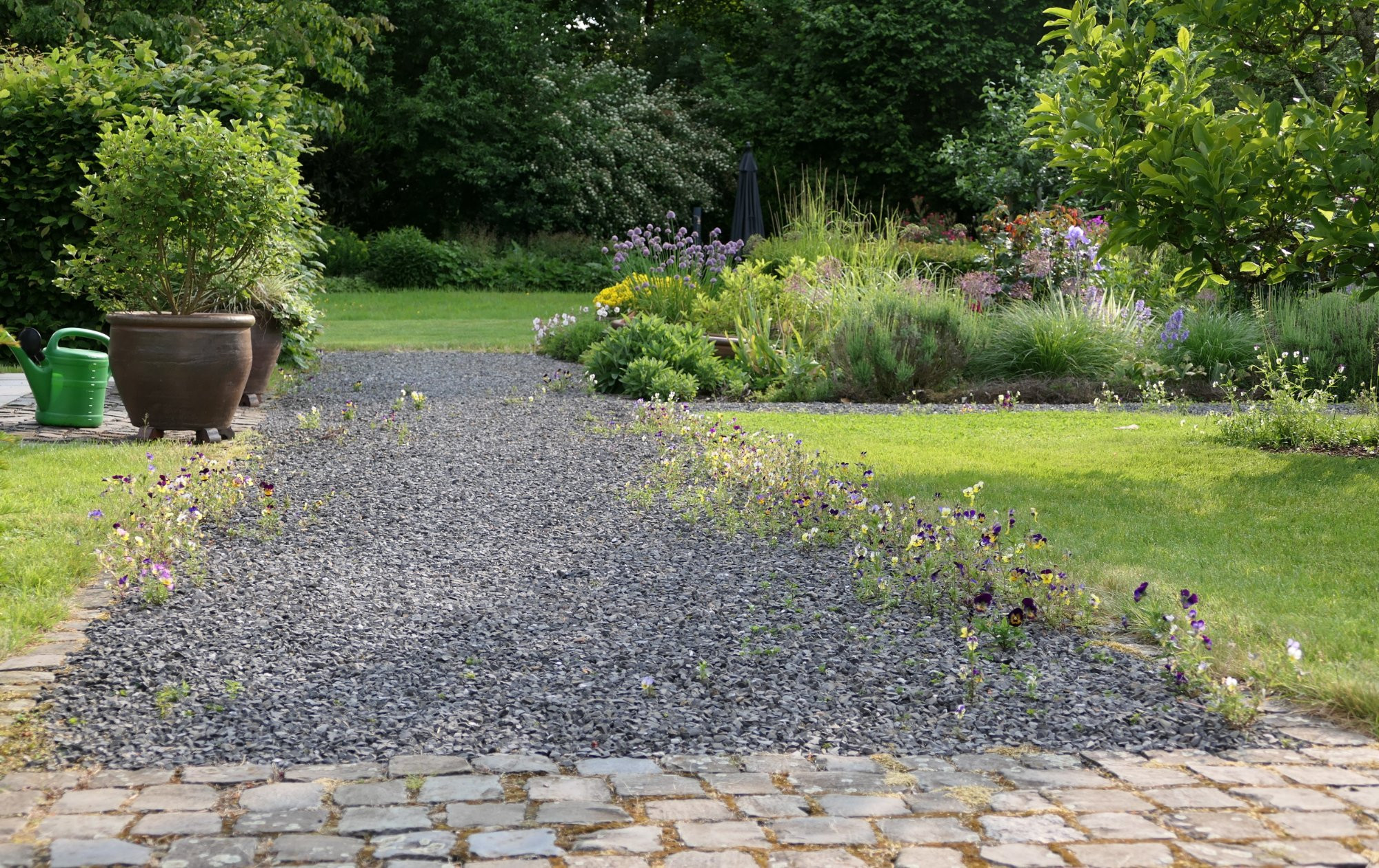 Bei mir wird es zu dieser Jahreszeit immer dschungeliger in den Beeten, die ersten Rosen blühen, die vagabundierenden Hornveilchen haben den Höhepunkt schon überschritten.