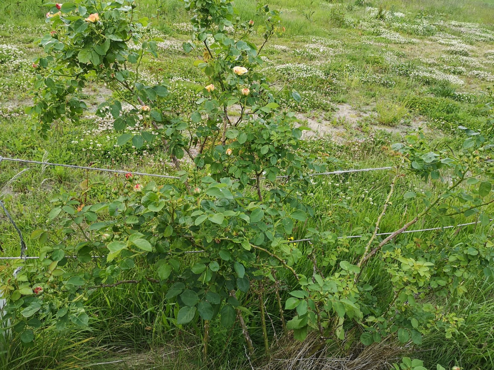 An diese Rose laufe ich fast jeden Arbeitstag vorbei, sie steht auf den Bahnhofsgelände. Früher wurde sie zu unmöglichen Zeiten zum eine Ei geschnitten und blühte trotzdem immer reichlich. Letztes Herbst wurde sie sehr stark zurückgeschnitten. Jetzt sieht sie schön aus.
