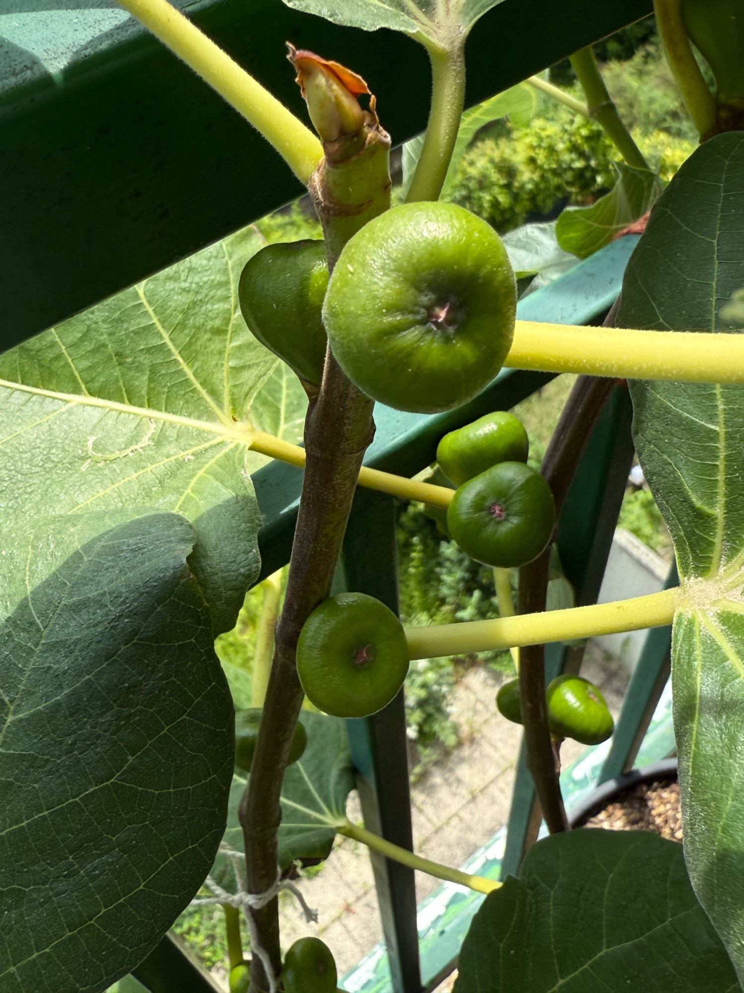 @ Feigenwiese: Schade, dass die Blätter Sonnenbrand abbekommen haben... Ich drücke die Daumen, dass die Früchte gut ausreifen.Feigenwiese hat geschrieben: ↑3. Jun 2025, 06:46Sie sind gut gewachsen, denke aber es dauert noch ein bischen bis sie reif sind. Das Frühjahr war bei uns jetzt nicht besonders warm. Außerdem konnte ich sie dieses Jahr nur sehr schlecht an draußen gewöhnen, was Sonnenbrand und Abwurf bei vielen Blättern verursacht hat. Anbei ein aktuelles Foto.Feigenfreund hat geschrieben: ↑31. Mai 2025, 22:42 @Feigenwiese: Wie hat sich Deine frühgestartete Arros Maxima entwickelt? Da hattest Du ja bereits im März Fotos von ersten Ansätzen von Herbstfeigen gezeigt. Reifen die jetzt schon bald?