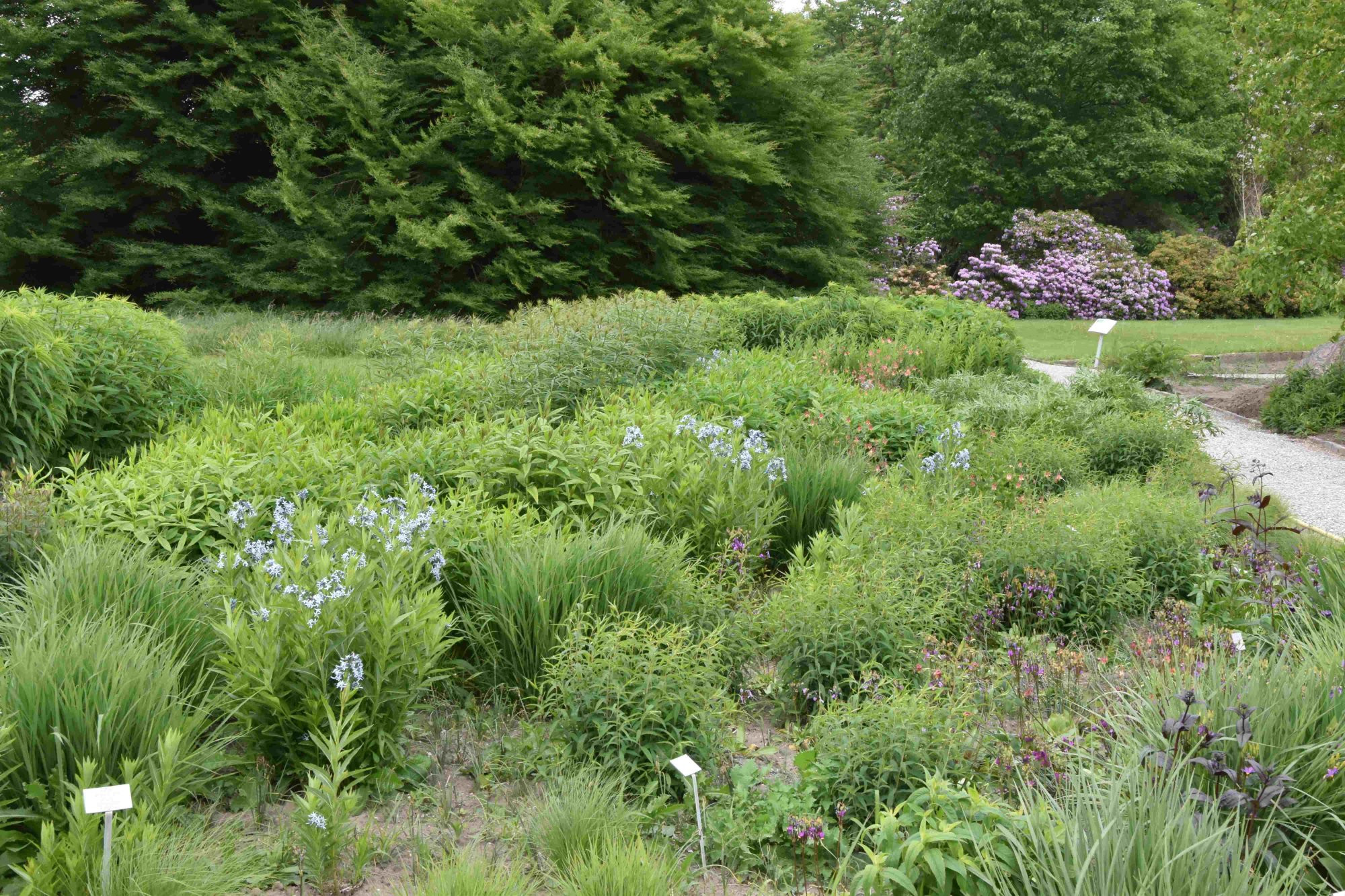 Viel Gelb und Blau, hier Akelei ...... und Iris