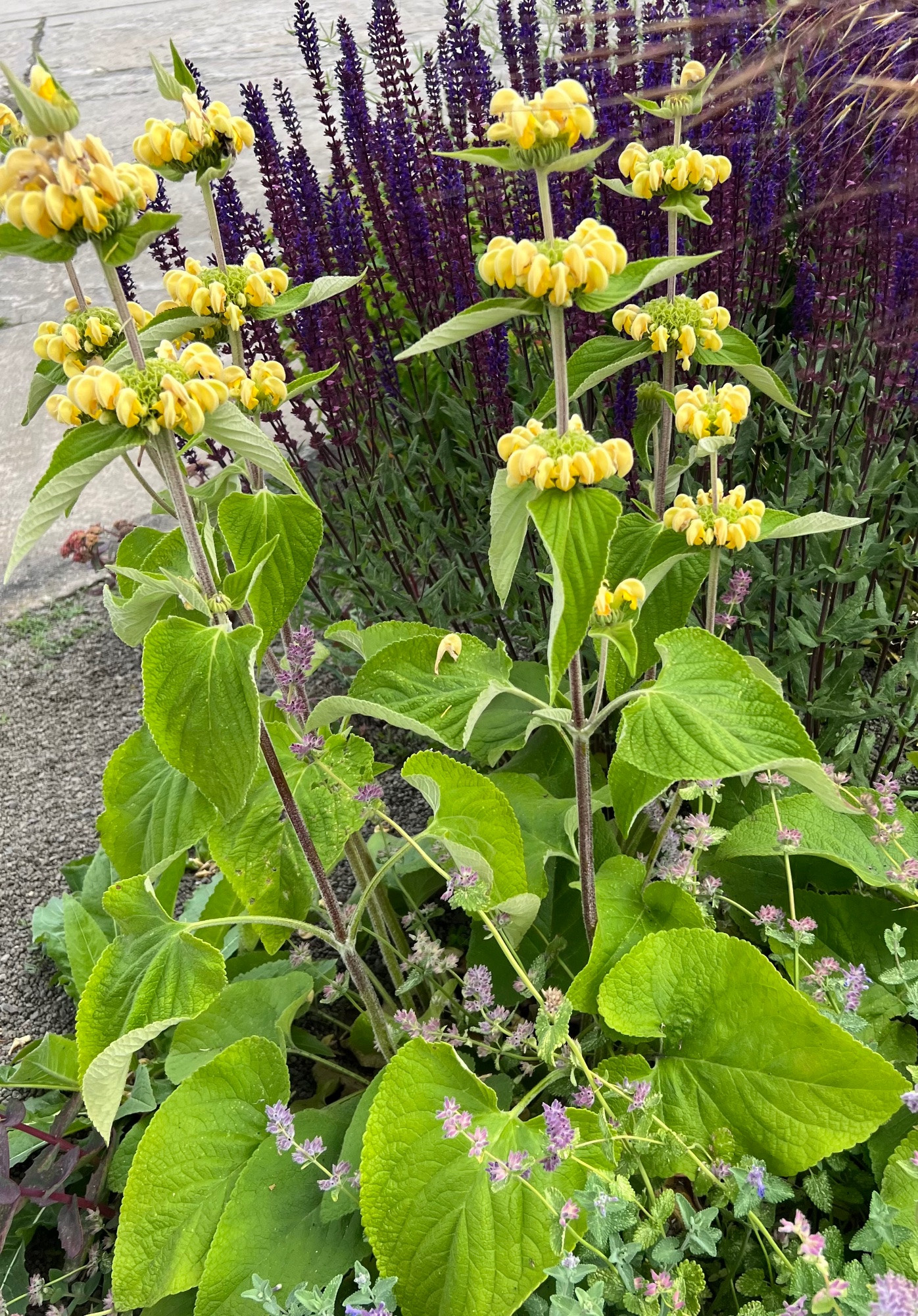 Phlomis ist hier noch nicht ganz so weit, aber das steht auch relativ schattig. Vor ein paar Tagen sah ich, dass die Mitte eines Kreisverkehrs quadratmeterweise damit bedeckt war, in voller Blüte, das sah schon klasse aus.