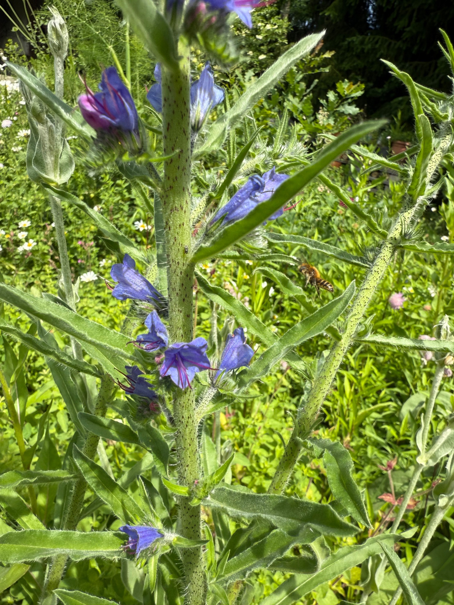 Seitdem der Nathan Kopf blüht, sieht man auch entsprechend spezialisierte Wildbienen, um seine Hoheit kämpfen. Leider sehr hyperaktiv daher nur ein Bild im Flug: Und auch die Parasiten finde ich immer wieder sehr schön: