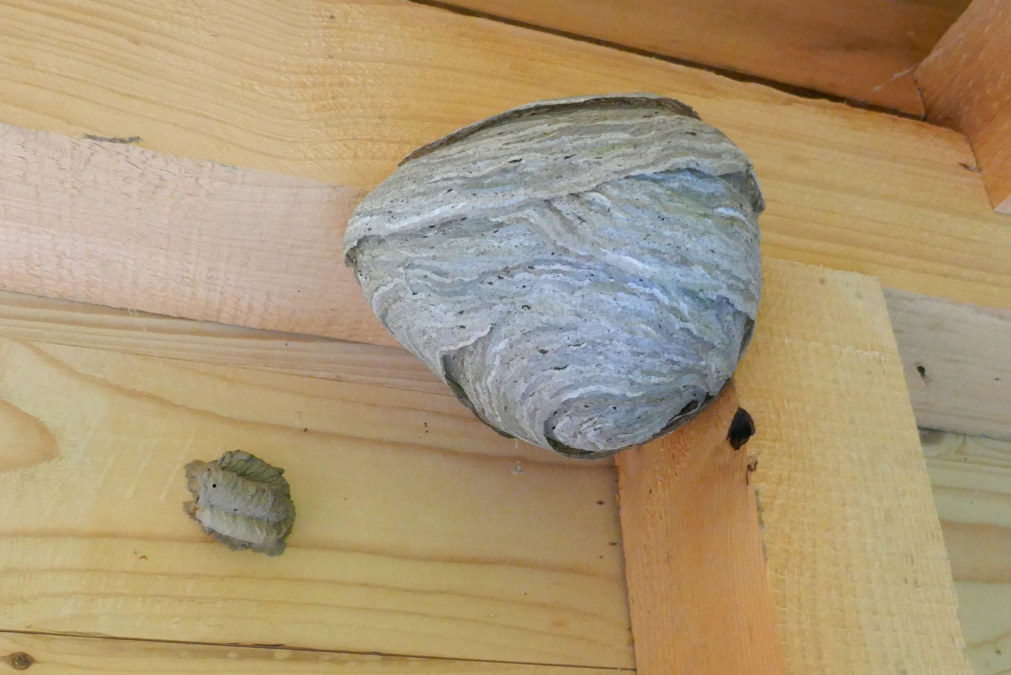 Dachte bisher das wenn man die Nester hängen lässt, sich keine neuen Wespen ansiedeln - stimmt wohl nicht ganz, das alte Nest wird einfach in das neue mit eingebaut