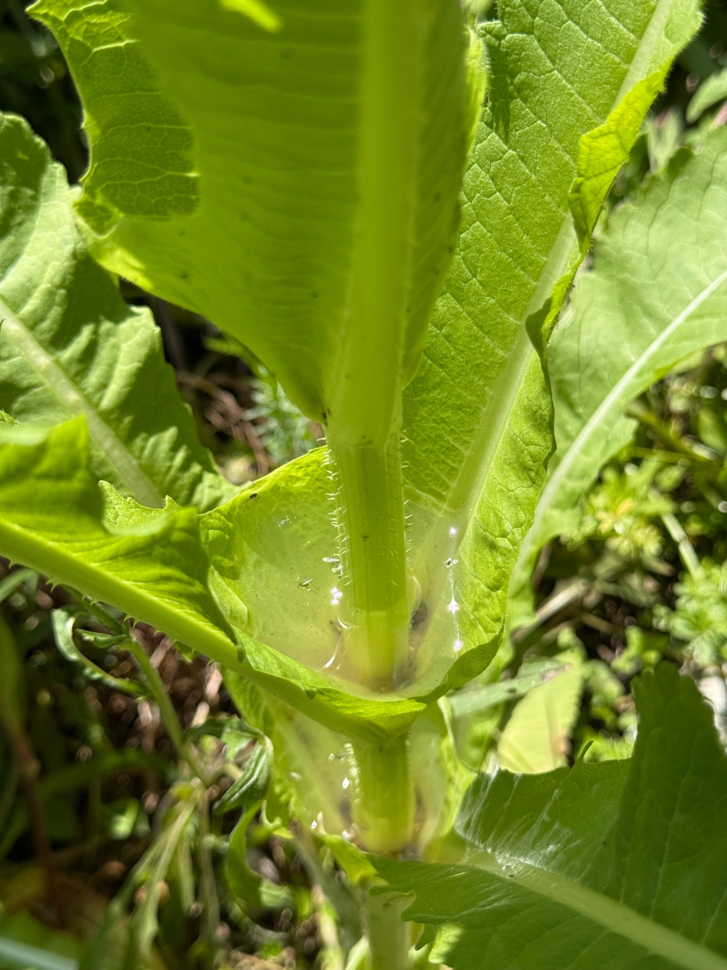 Die Karden übernehmen doch einige nette, ökologische Funktionen im Garten. Neben dem offensichtlichen Angebot an Pollen und Nektar in einer Zeit, in der die meisten Bäume und Stauden unsere heimischen Flora verblüht sind. Bietet es vielen Tieren auch Wasserreservoir, die sie sehr gern anfliegen zum Trinken. Ich habe jetzt zahlreiche Wespen gesehen, die sich dort einen Schluck gegönnt haben. Sie scheinen dazu den Wasserbehälter am Rand anzubeißen, so dass sie in Sicherheit davon trinken können, ohne dass die Gefahr laufen zu ertrinken.