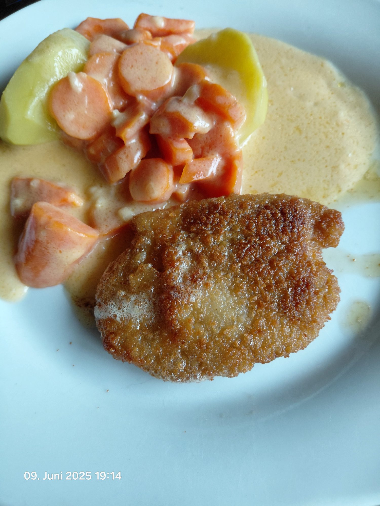 Bei mir ganz profan Sahnemörchen mit Kartoffeln und Mini Cordon bleu